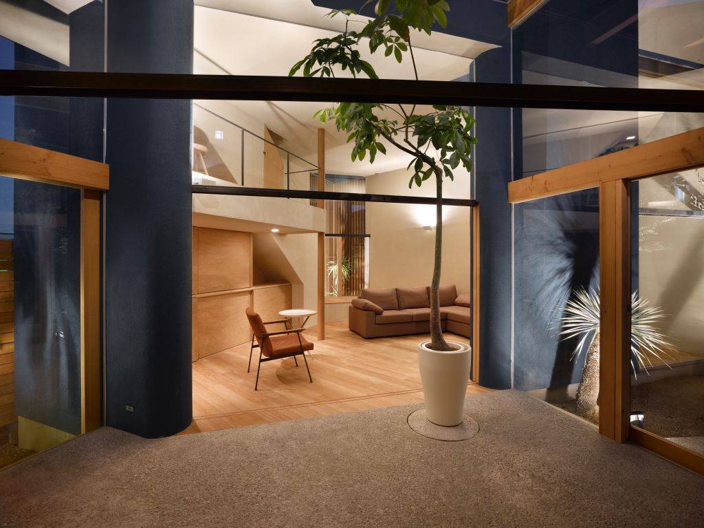 建築主は、「Noel hair」と「Rue de Noel」という、ヨーロッパのテイストを取り込んだヘアサロンを経営しており、今回の住宅設計でも、青い外壁や、アンダルシア産の樹齢200年のオリーブなどを取り入れ、ヨーロッパのリゾートテイストを加味しています。