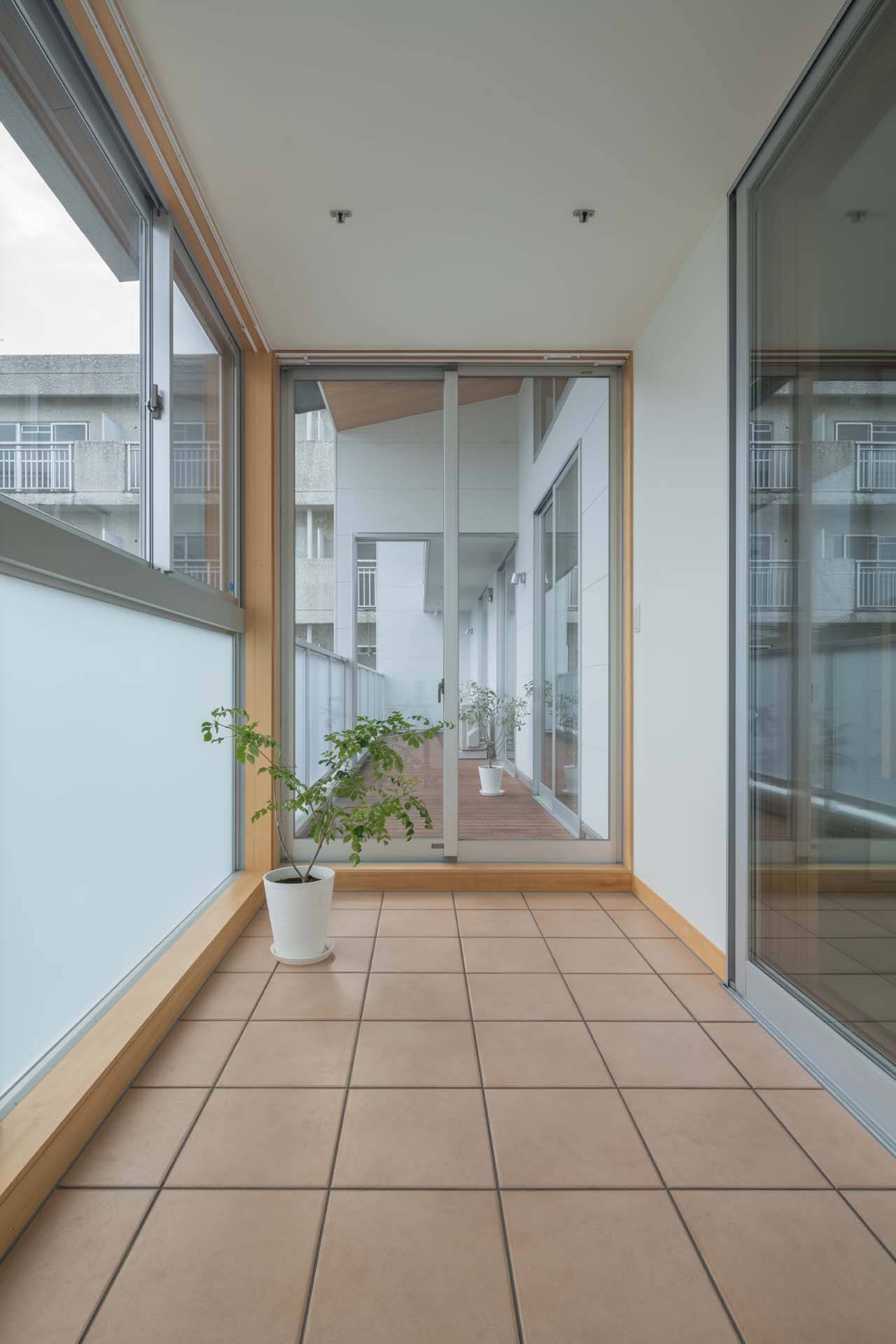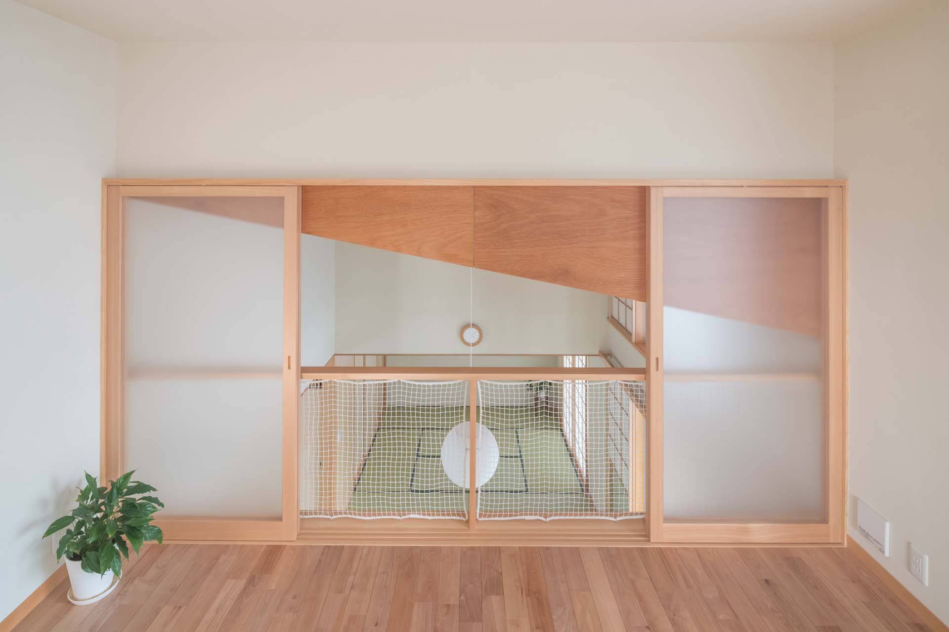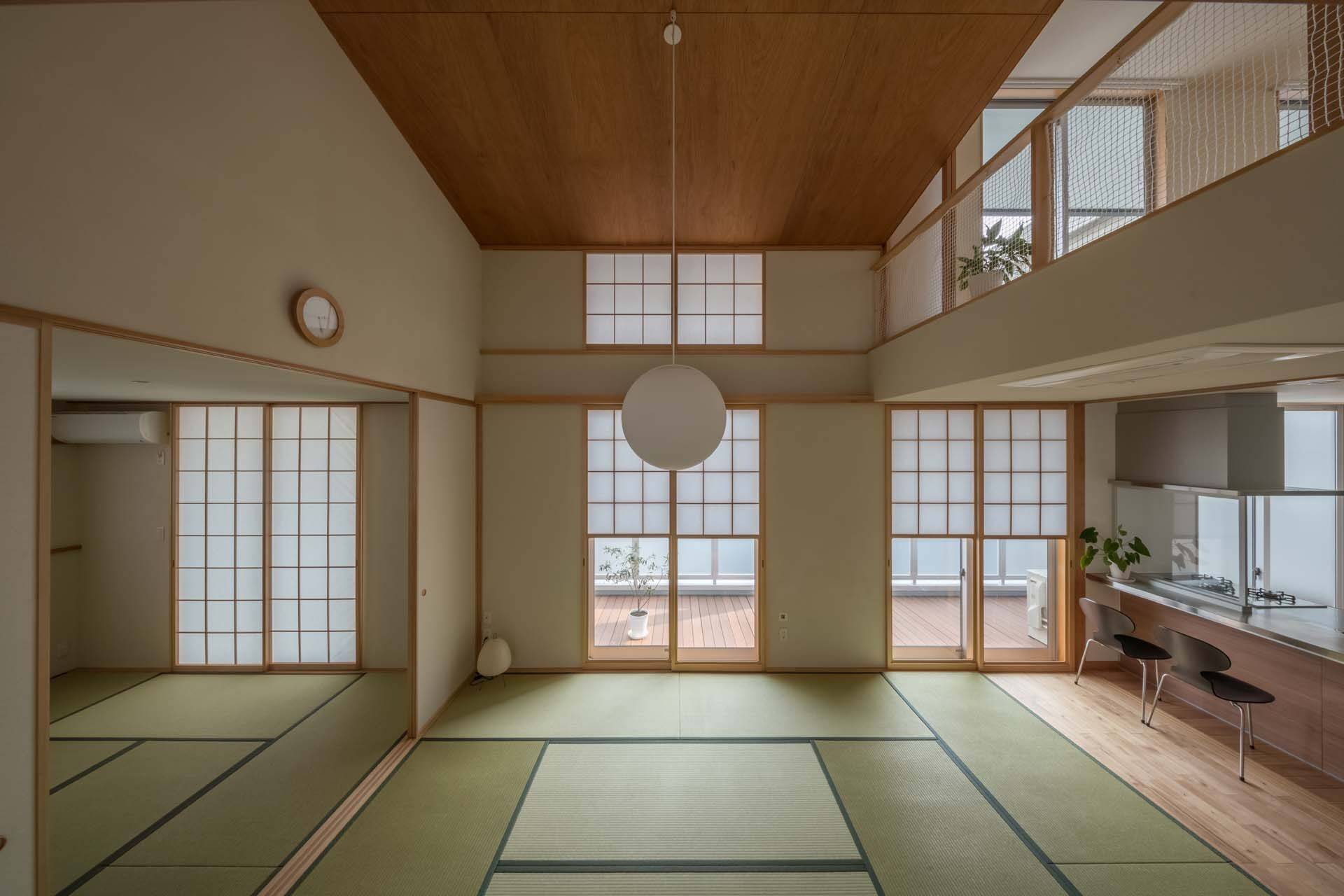 動物病院併用住宅の建て替え計画。1階動物病院と2,3階住宅部分で必要な機能と面積を形にすると、1階>2階>3階と上階へ行くほど小さくなるボリュームとなったため、東側道路に対しては上階へ行くほどセットバックすることで威圧感を軽減している。さらに2階広間の一部が半階分の吹抜となることで、1階、2階、2.5階、3階の4つの切妻屋根が連続した形となった。 駐車スペースの病院/住宅エリアを分けるルーバー壁はガラス張りの待合内部にまで曲面を描きながら連続し、4つの切妻屋根のボリュームを浮き上がらせて見せている。住宅部は2階で畳敷きが連続する広間が特徴的で、LDK・寝室・客間・勉強室といった機能が、襖で仕切られつつ続き間としてつながった家である。