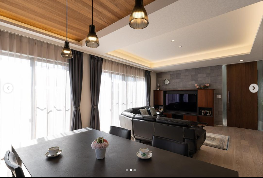 ダイニング天井はご主人様お気に入りのチーク材。