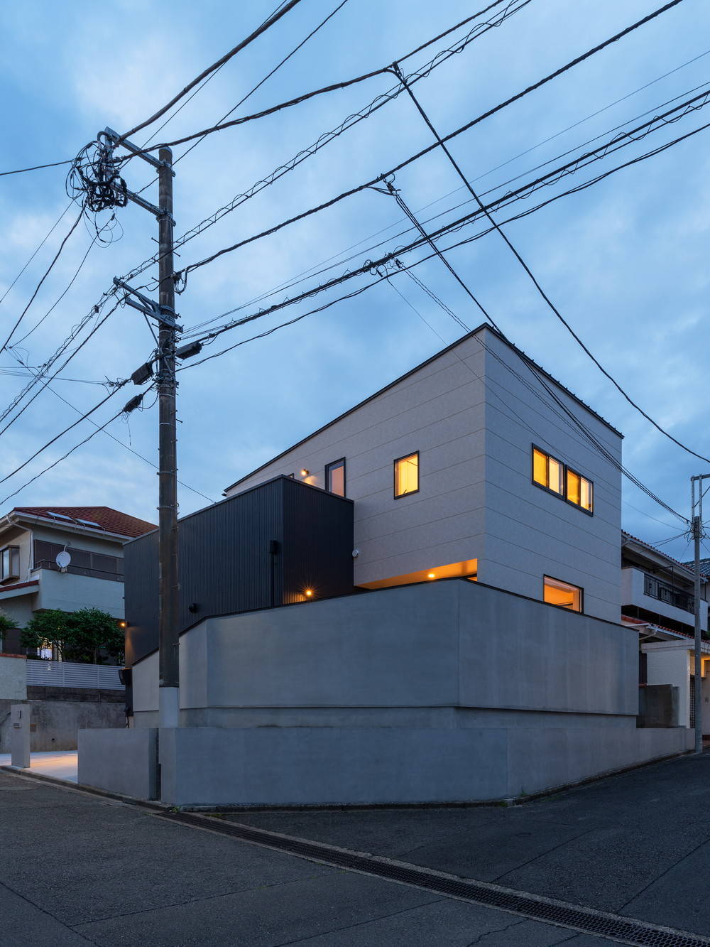角地という立地から、陽当りの良い空間を目指しつつ、人の目からプライバシーを守るプランニングを目指しました。