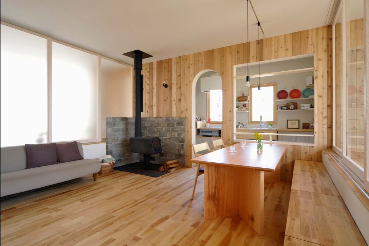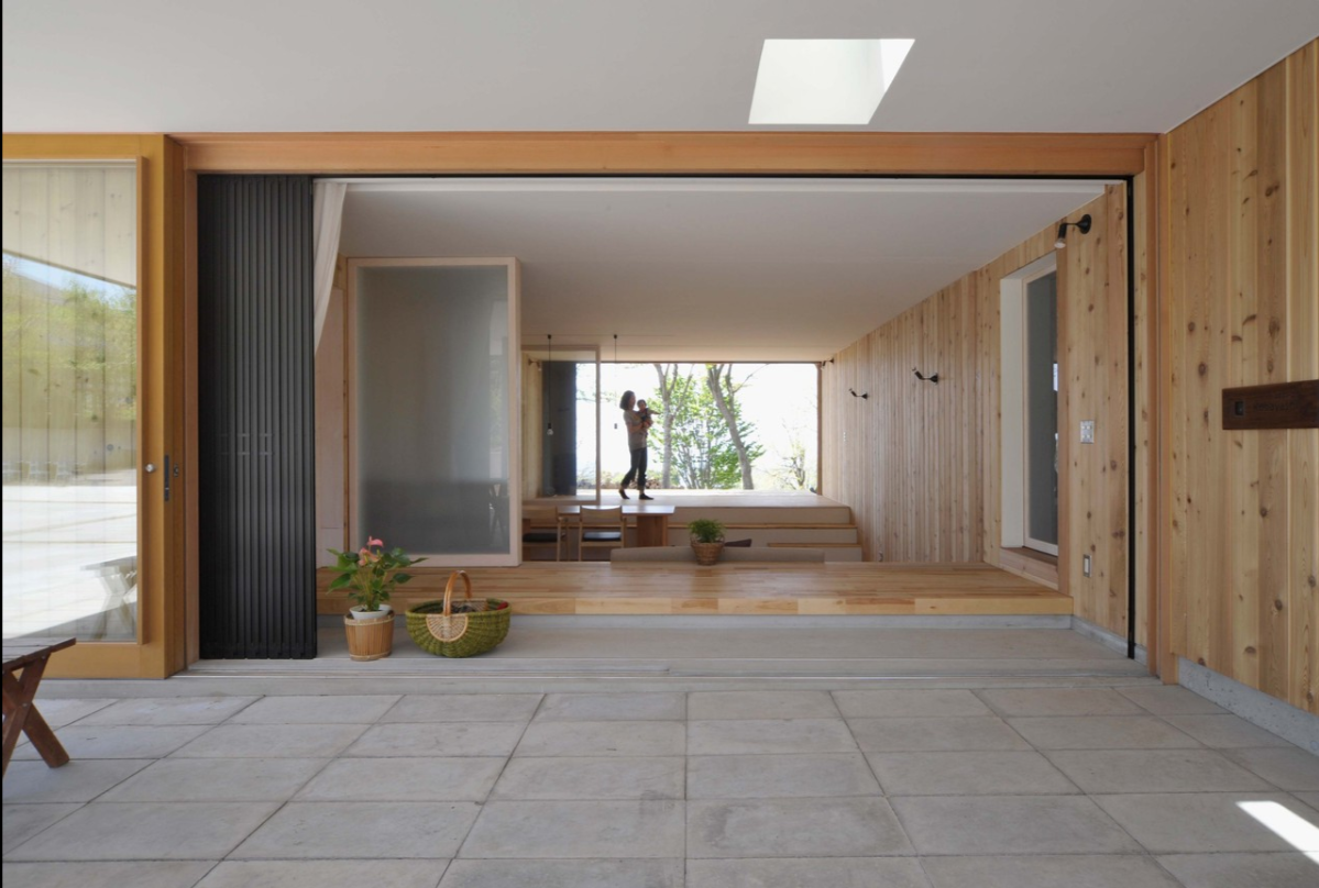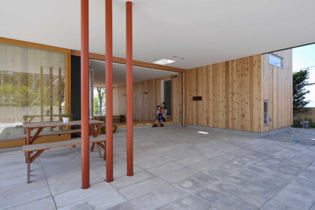 周辺から、特に隣家からの視界を極力遮ることのないボリュームと配置、中と外を連続させた枠組みの弱い曖昧な空間とすることで、風景に溶け込む暮らしと建築を目指しました。