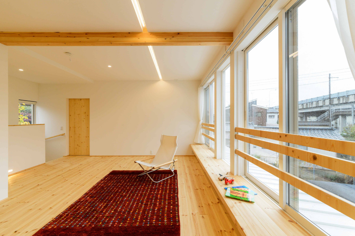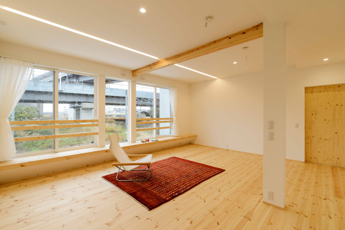敷地は車1台がやっと通れる道を一番奥に入ったところ。周りは線路と跨線橋という好条件とは言えない特殊な敷地。南と西側に建物が建つことはないため、視界の抜けは良く、明るく開放的な場所でした。