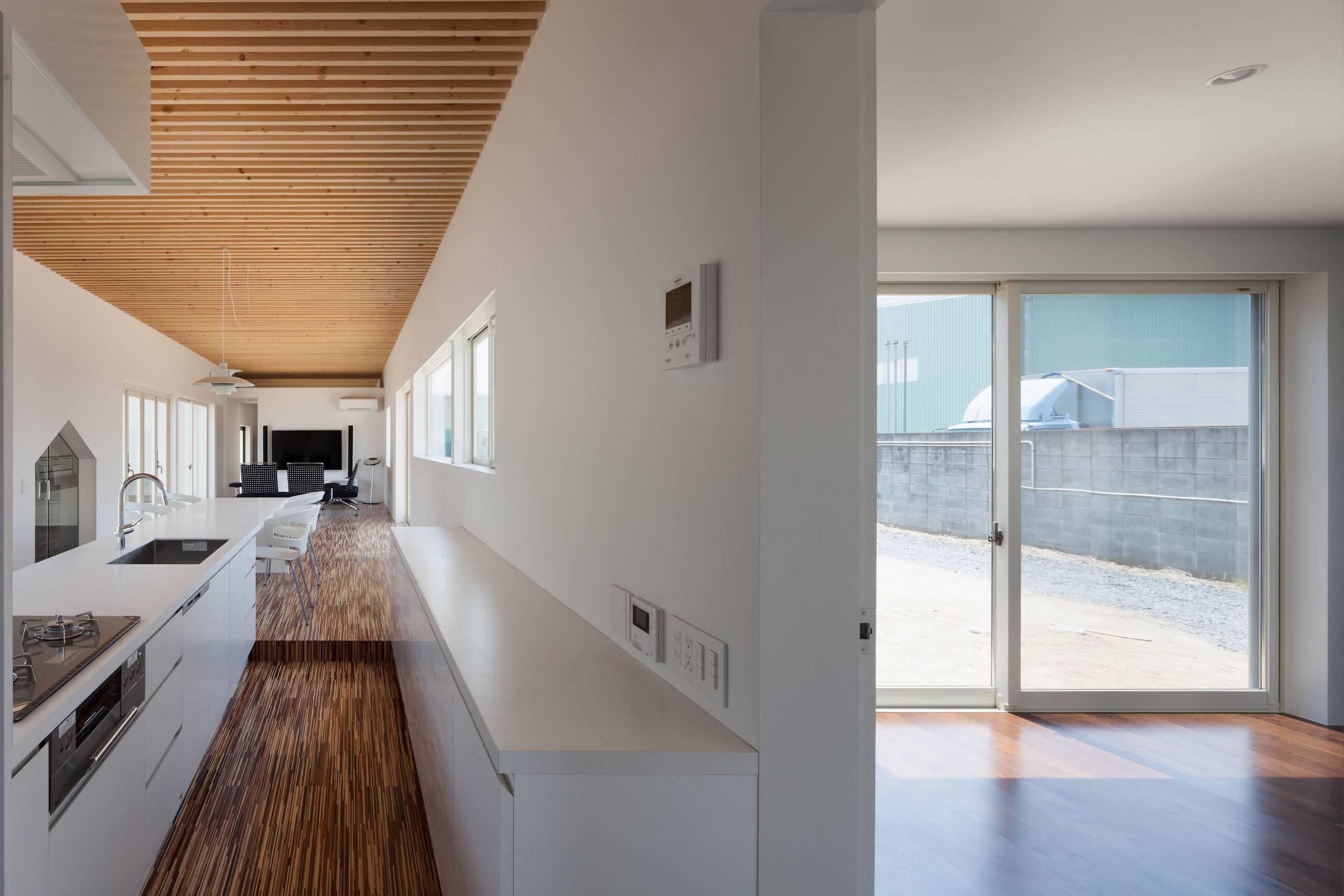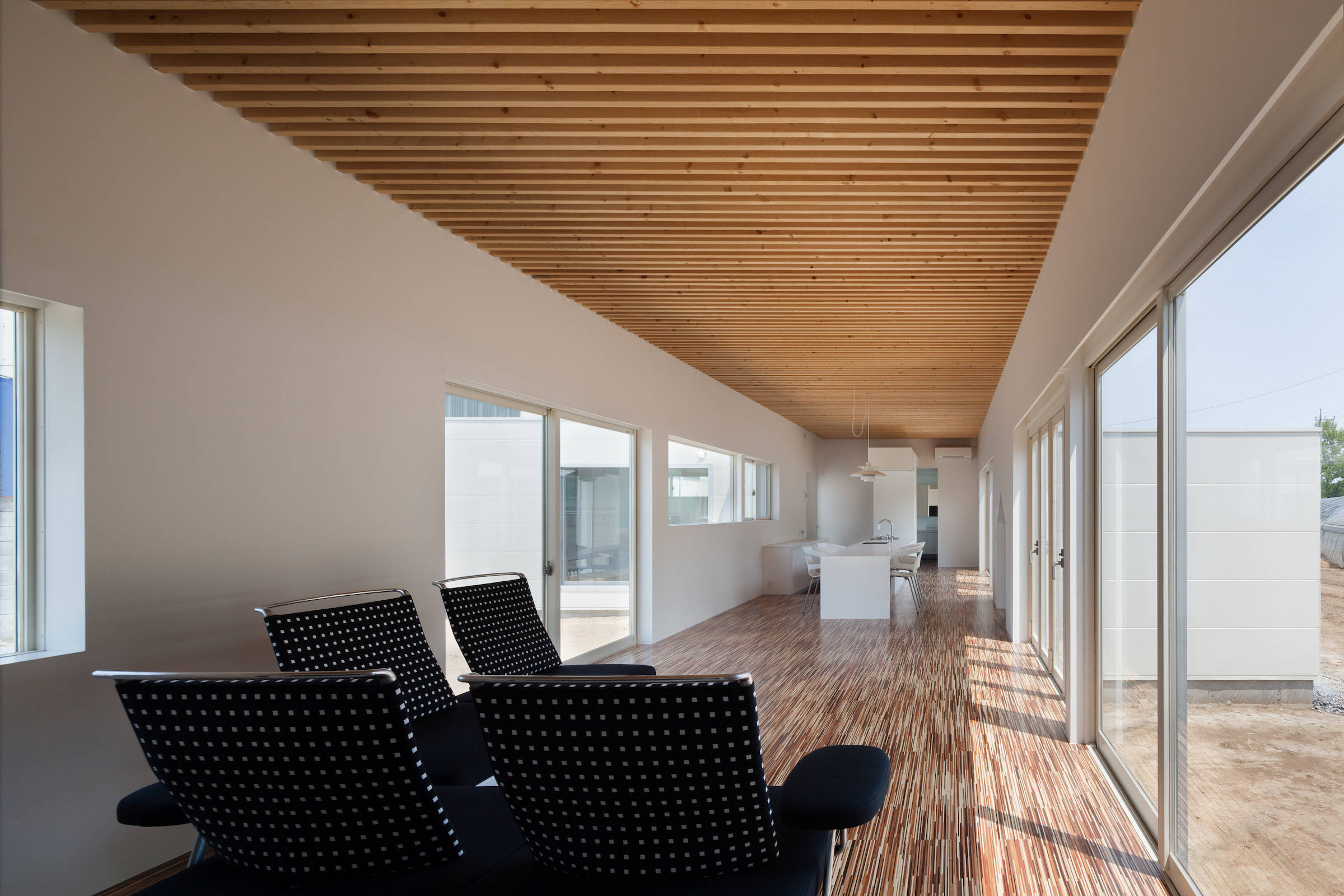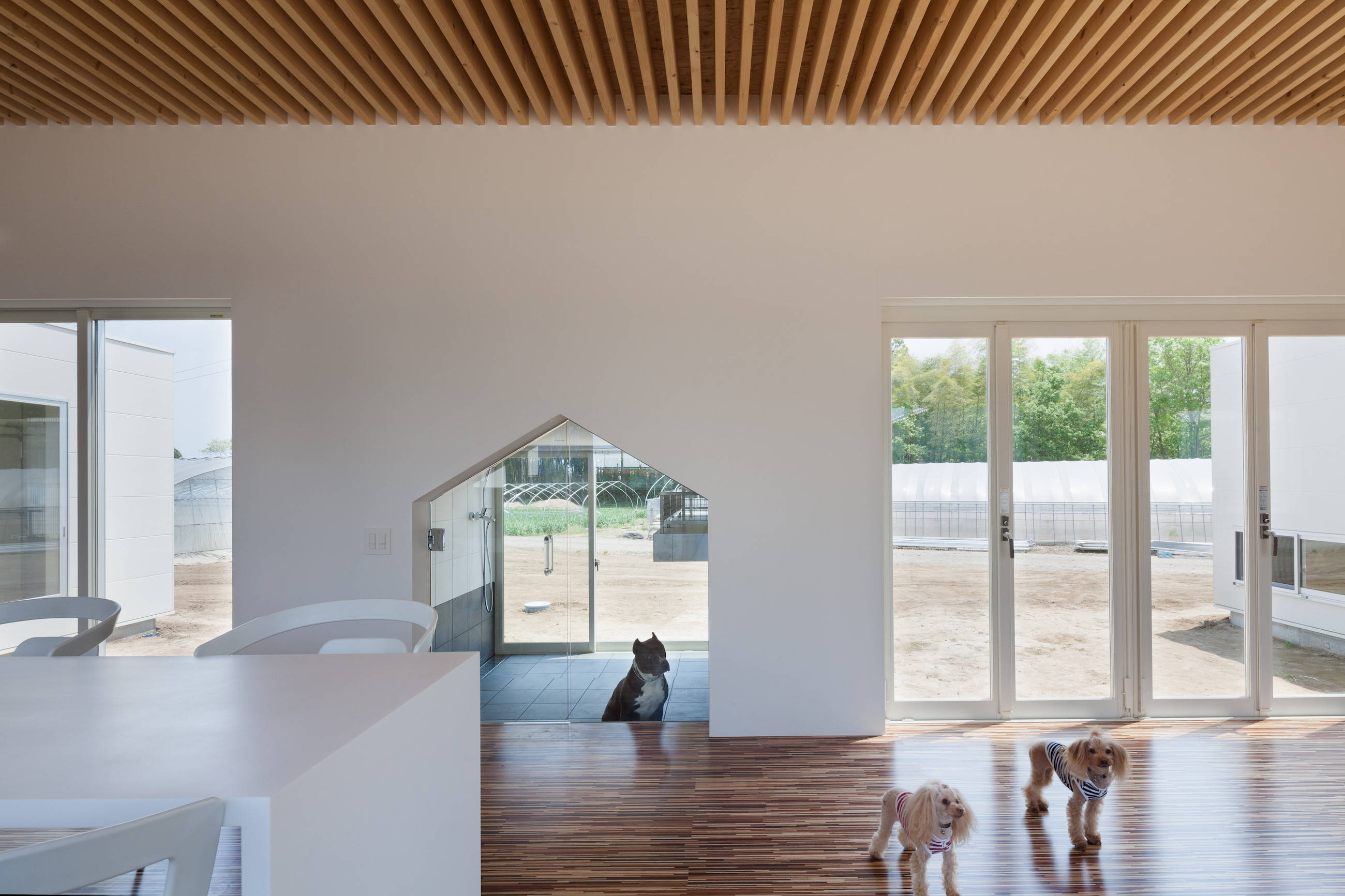 友人の多いご家族で、みんなが集まるLDKを背骨のように中心に置き、そのLDKの両側に個室や犬部屋が木々が枝を伸ばす様に畑に延ばして計画しました。
