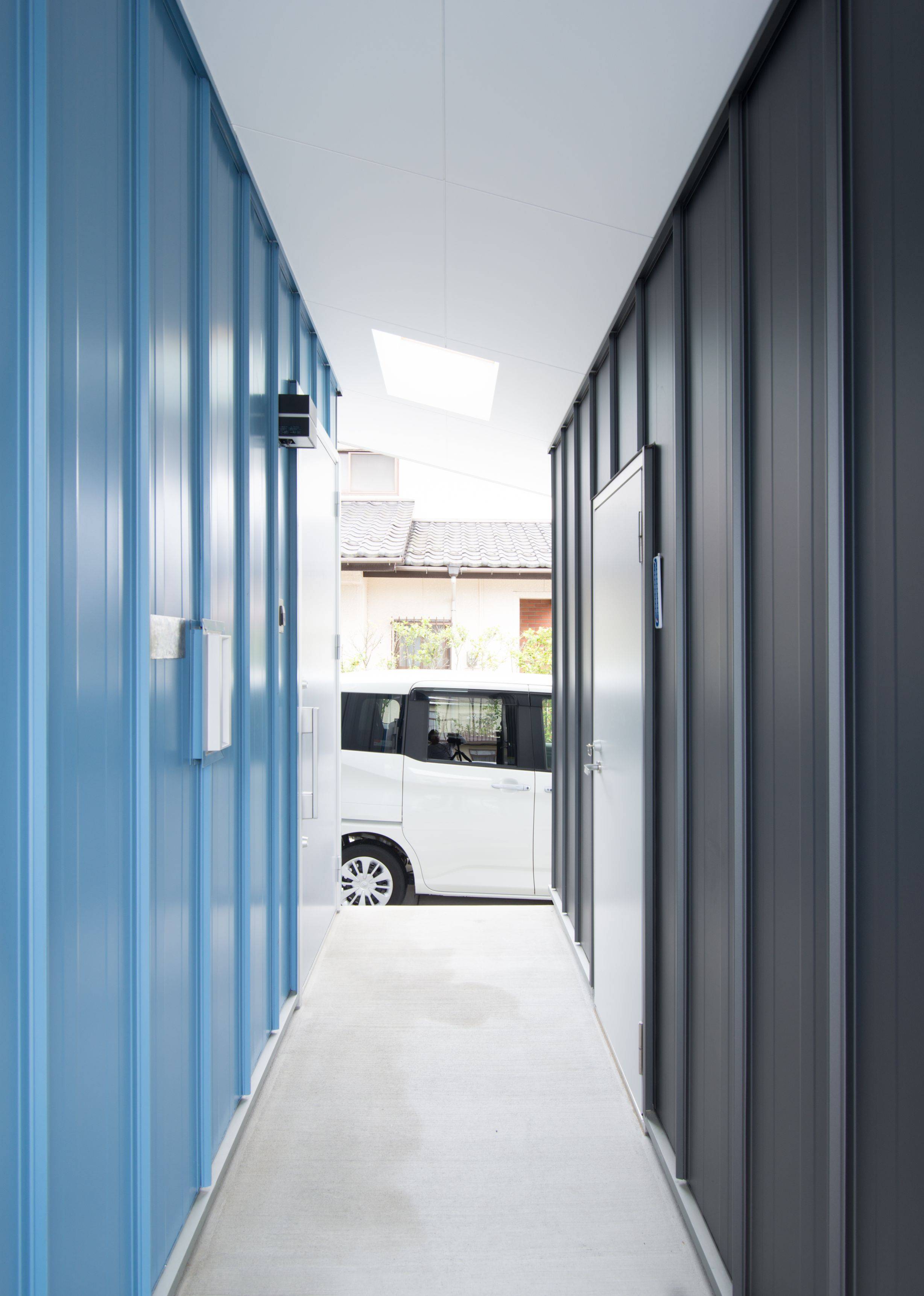 それぞれのメリットを検討し、ご夫婦とお子さんで暮らす平屋の新築を建てることになりました。2面が接している道路から家の中が丸見えになることに配慮し、アプローチとプランを工夫しています。