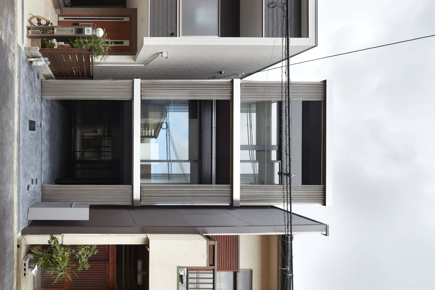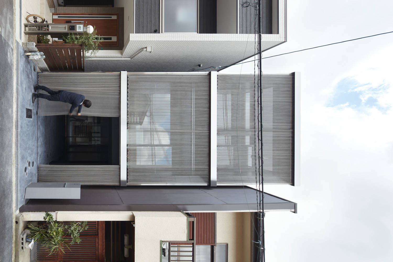 間口3.75m、奥行き16.92mという細長い敷地に、もともとあった長屋を解体し建て替えた住宅です。