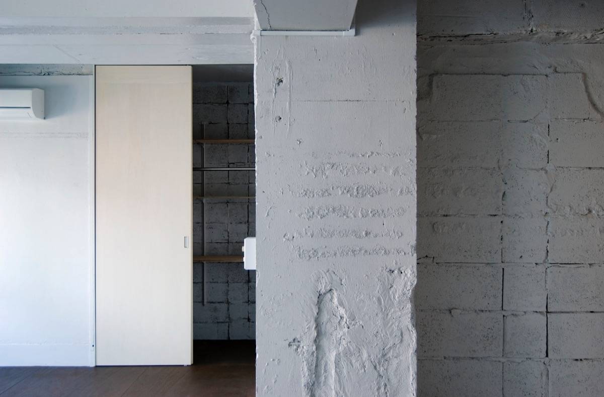 既存の内装材を取り払ったコンクロート剥き出しのざっくりとした表情を活かし、