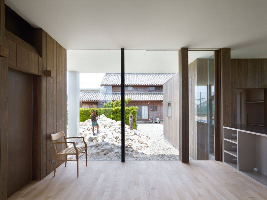 実家の隣地の畑に、住まい(夫婦2人子供3人を想定)を建てたいということでした。隣地の母屋との距離感を、つかず離れずでうまく取りながらも、この敷地状況を生かした建物を望まれました。