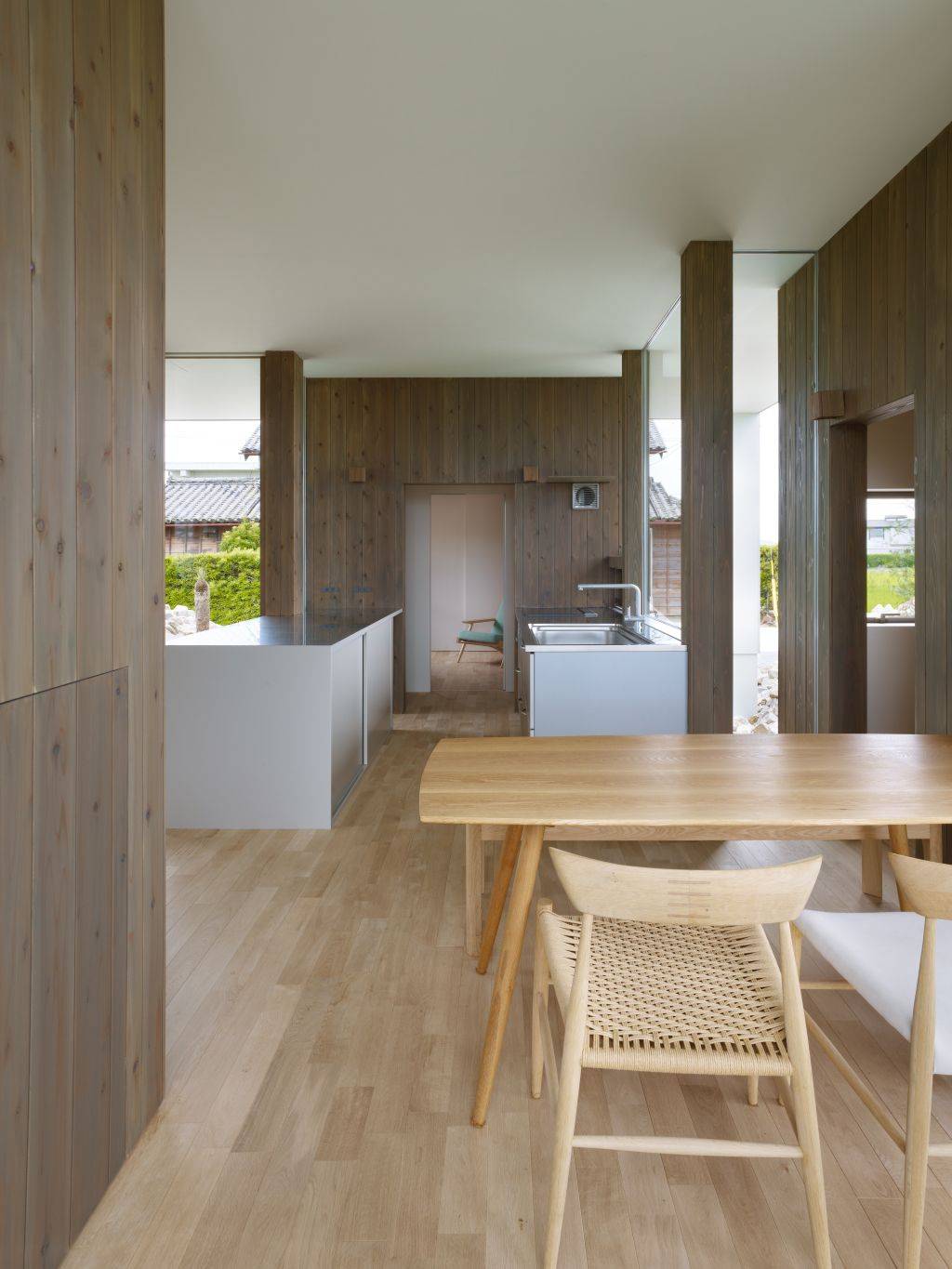 景色や風が変化する様子を楽しめるよう、周囲に開口部を配置しています。個室とLDKを、それぞれの延長として相互に利用できる、広がりのあるプランとなっています。建物周囲に、残土を利用した土山(表面は雑草除けの砕石)を風除けとして造成しています。花を生ける器のように、山ごとに植栽を植えていく予定となっています。