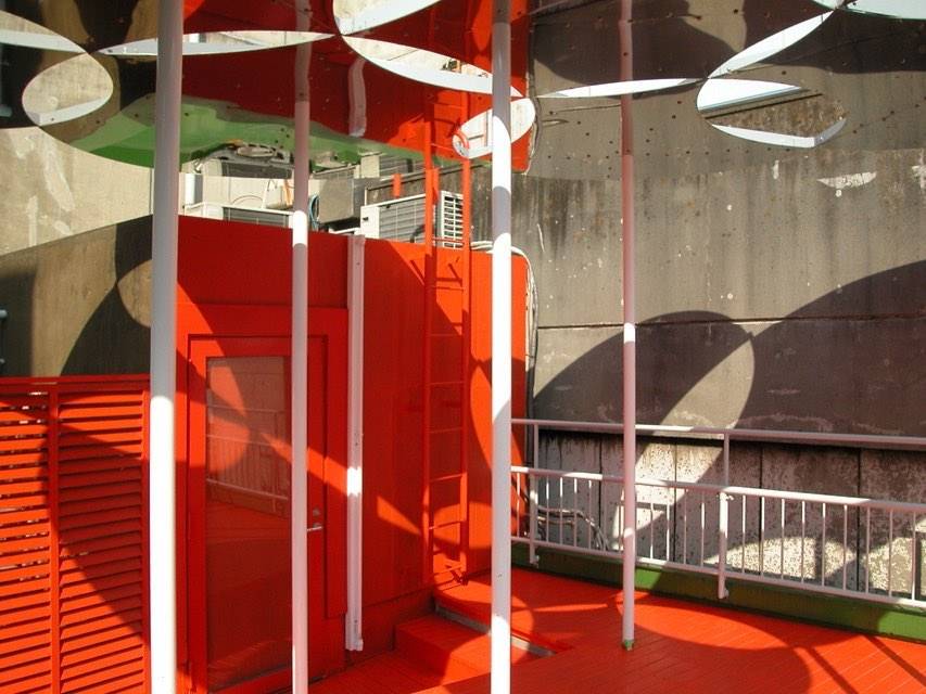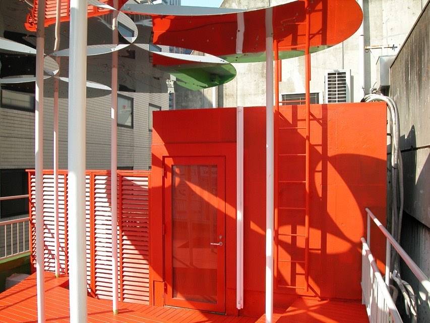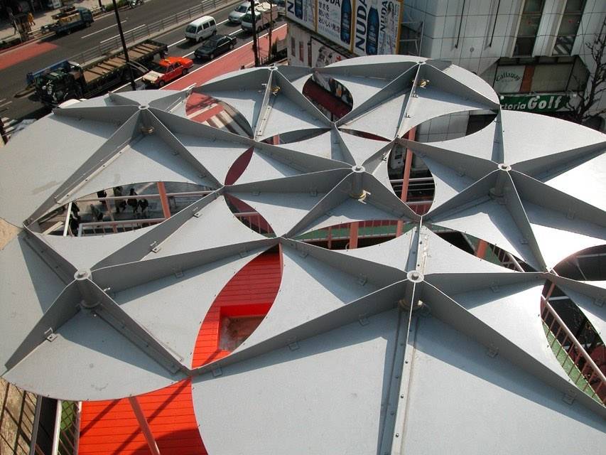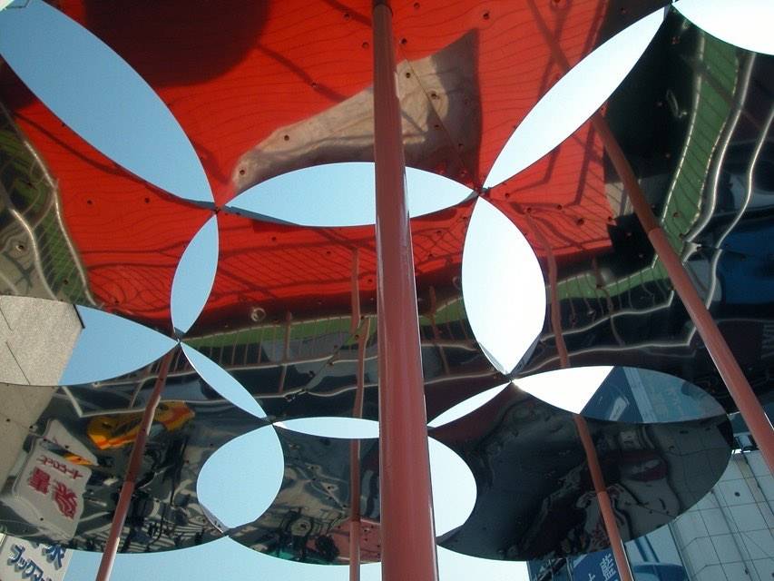 東京都心の空を飾る、屋上広場の改修プロジェクト。書店ビルの屋上という場所の特性から、ビルの看板として機能しつつ、都市の新しいランドマークとなることを意図した。ここでは、直径の異なるスチール屋根と、柱からなる8つのユニットが、屋上の上部に重合する形で配置される。それにより、外部の気配を取り込みつつ、空中に浮遊する現代的な茶室のような気配の現出を目指した。