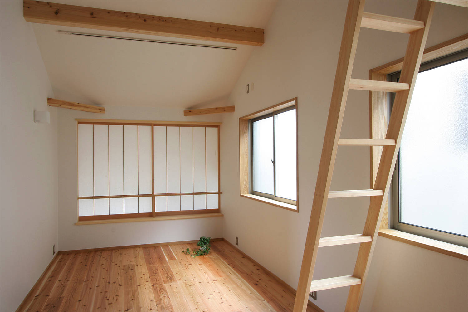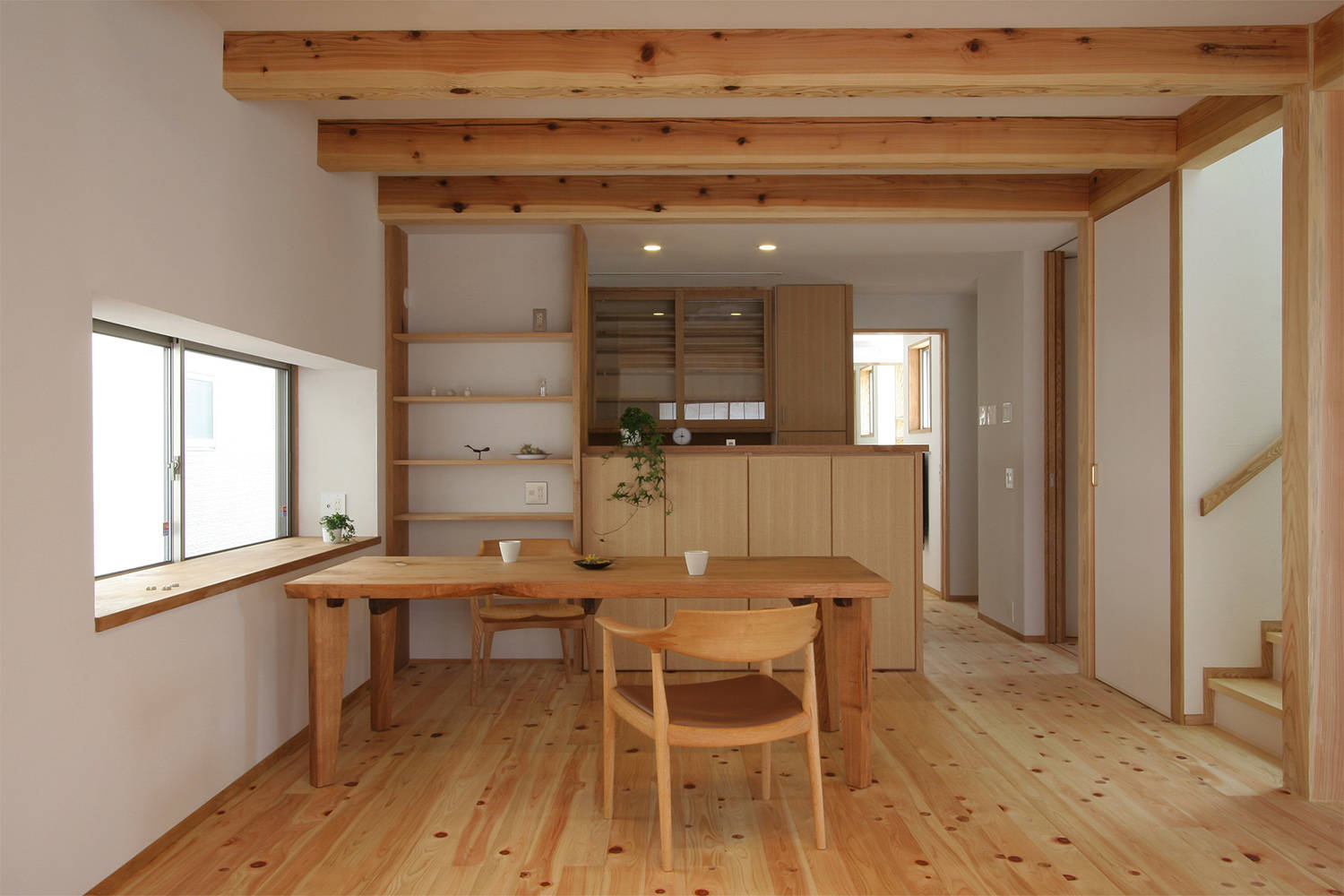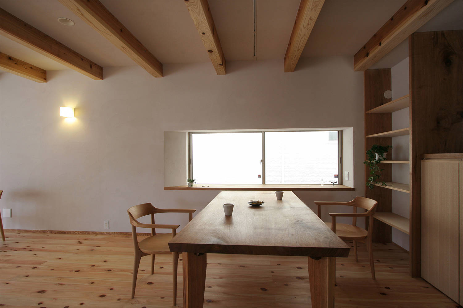 庭に面したリビングの大きな窓はガラス戸も障子も壁に引き込むことができるようにして、開放するとより庭とのつながりを感じられます。デッキから庭に出て、庭のハーブをサッととってお料理に使ったりもしているそう。