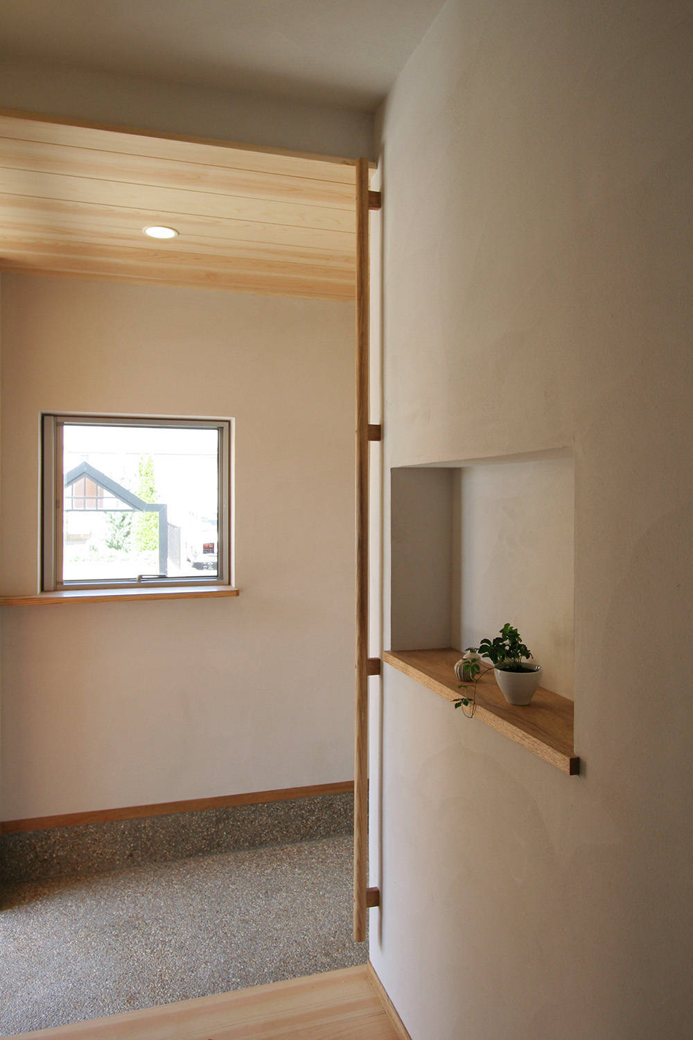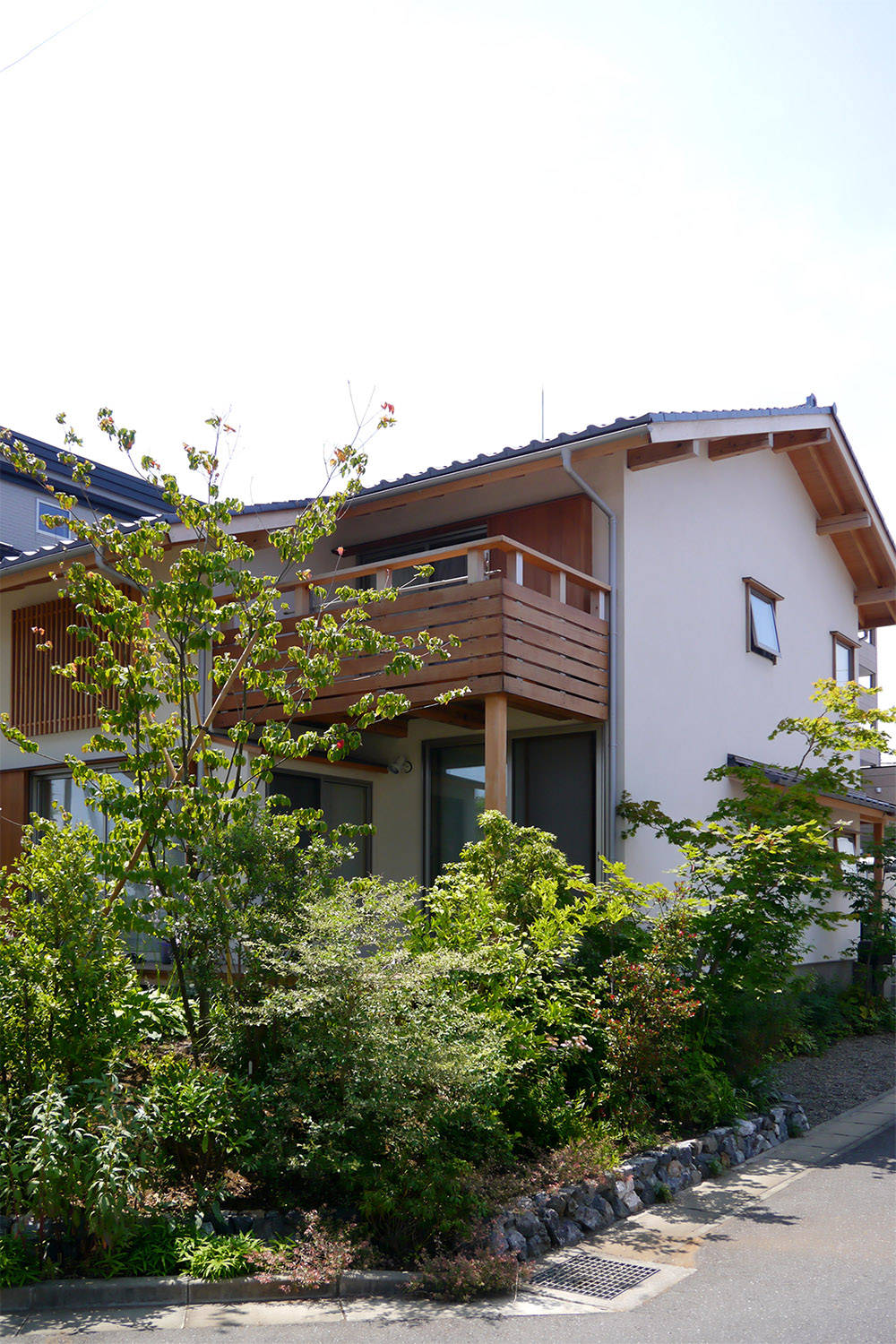 宅地造成により少しずつ街が出来上がってきつつあるエリアにある、駅から近くて便利な住宅地の一角に建つ住宅です。 長くてゆとりのある敷地をいかして、南側にはたくさんの木々や草花が楽しめる庭となっています。