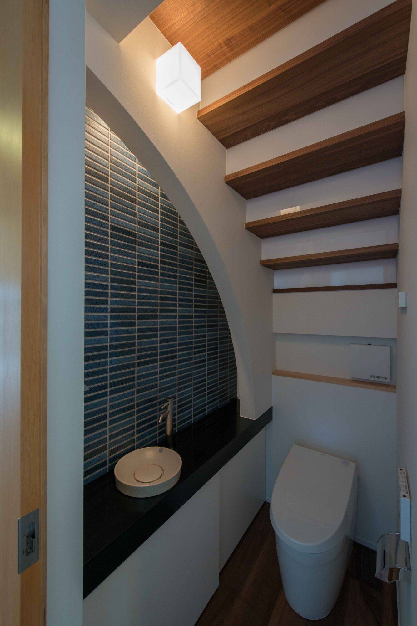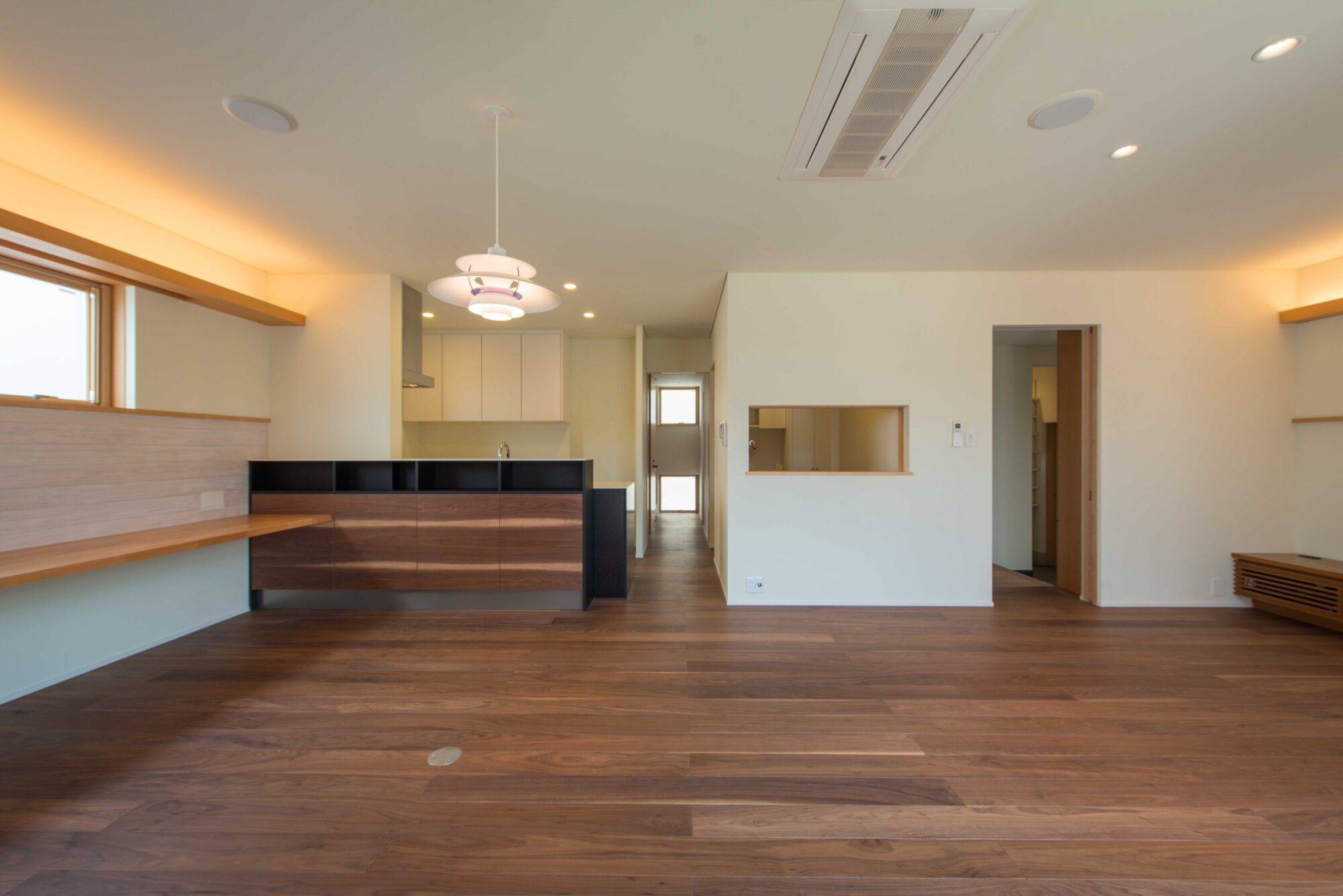 住宅部の一階はキッチン、洗面、浴室、トイレなど水廻りを集約し、家事行為がスムーズに行いながらも物があふれないよう収納や作業スペースを広く確保しています。また、庭には住宅から少し距離を取った「離れ」のような和室があり、いつか来るであろう親世帯の介護同居などを見越し、リビングから緩やかに看守れるようにしています。2階は北側の居室に採光や通風を確保する為に中庭のようなバルコニーを設けました。バルコニーに接した2階廊下は幅を広くして本棚を設置し、図書館空間にもなるようにしています。個室は確保しつつも、共用部を充実させることで家族が自然と集まってくるような家になることを期待しています。