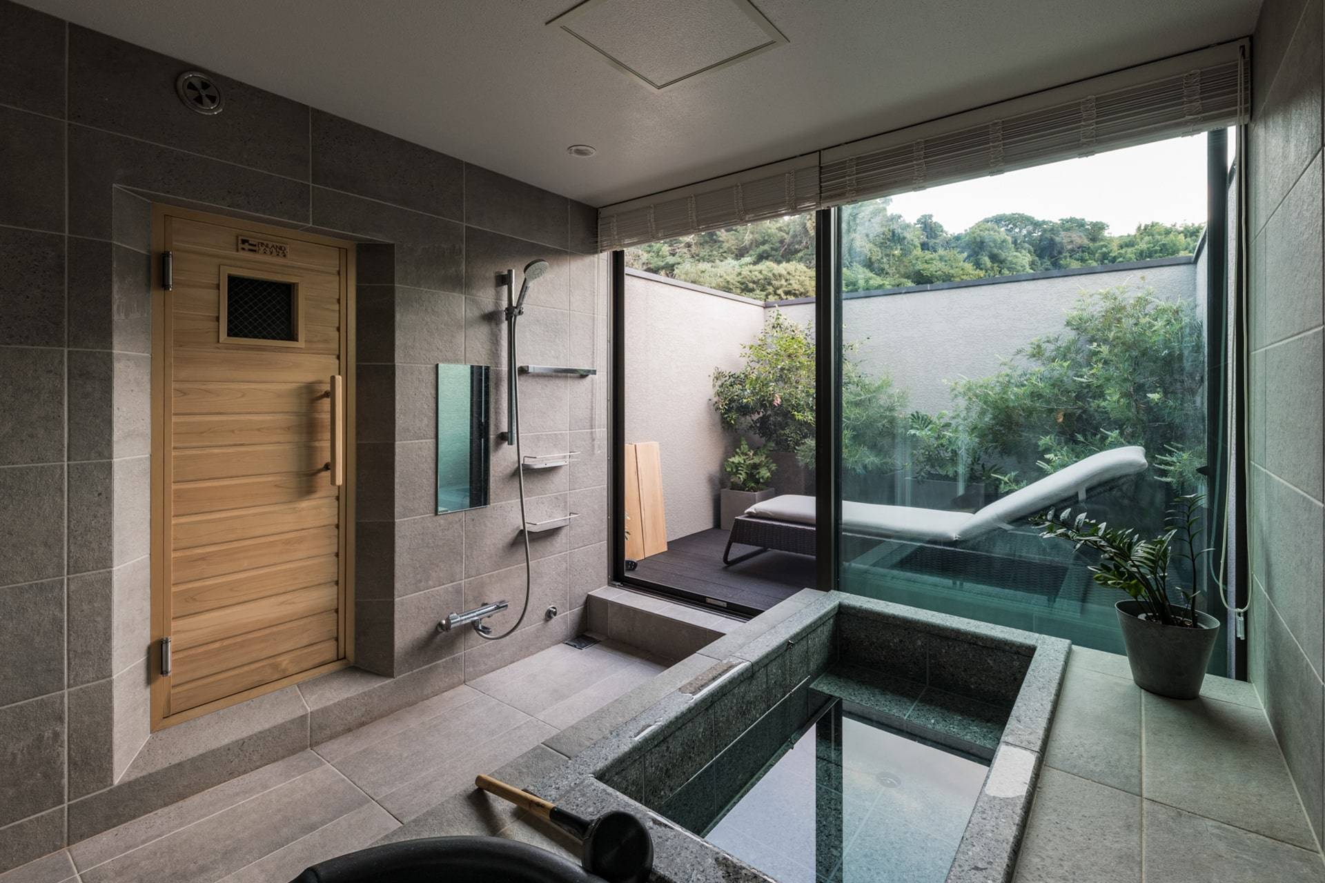 2階には寝室や水廻りスペースを配置しました。浴室にはサウナと陶器の水風呂、和風呂を設置し、外のテラスで涼むことも出来ます。ちょっとした非日常を味わえる贅沢な空間となりました。