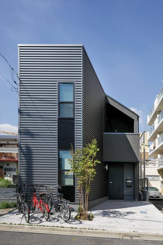 細長い敷地に建つ5人家族のための住宅です。