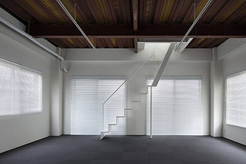 1階は駐車場、2階はトレーニングルーム、3階が改修のメインとなった住宅という構成だが、3階と2階とをつなぐ為に特殊なハシゴを設けた。
