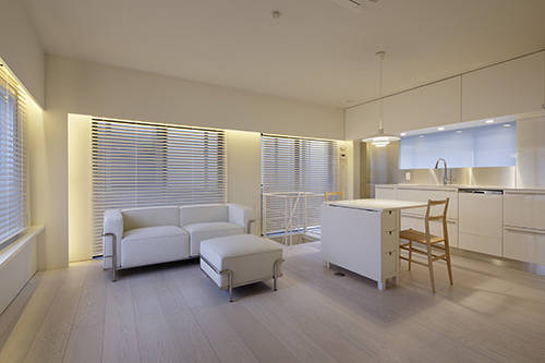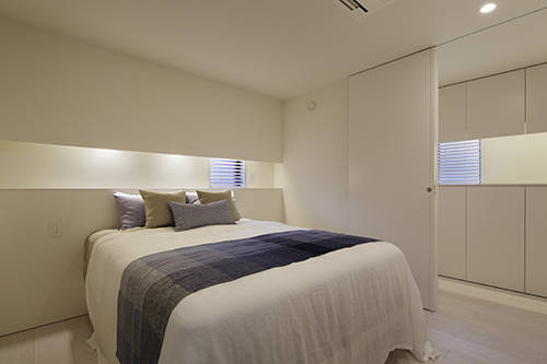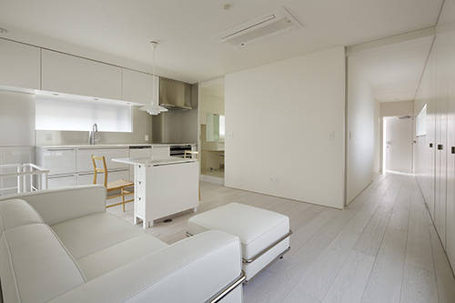 全ての空間を引戸で仕切り、普段はワンルームとして使うホテルの様な住まいを提案した。