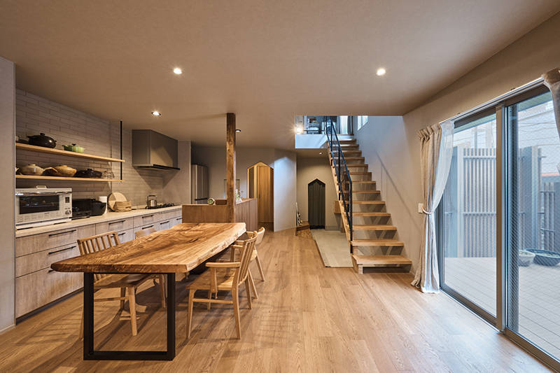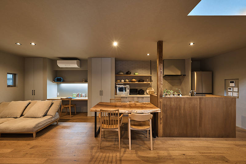 周辺からの視線のないハイサイドからは土間やダイニングの最北部まで採光を届けてくれる優しい住空間になっています。