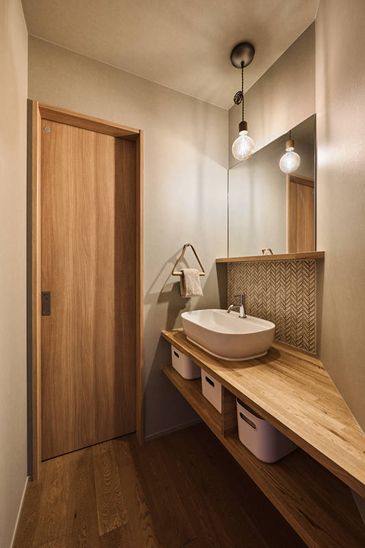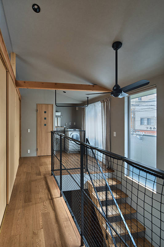 交通量の多い前面道路とご実家との間にセットされる計画なので、ご実家へのアクセスも担保しながらの生活空間が機能的にレイアウトされることが命題であった。