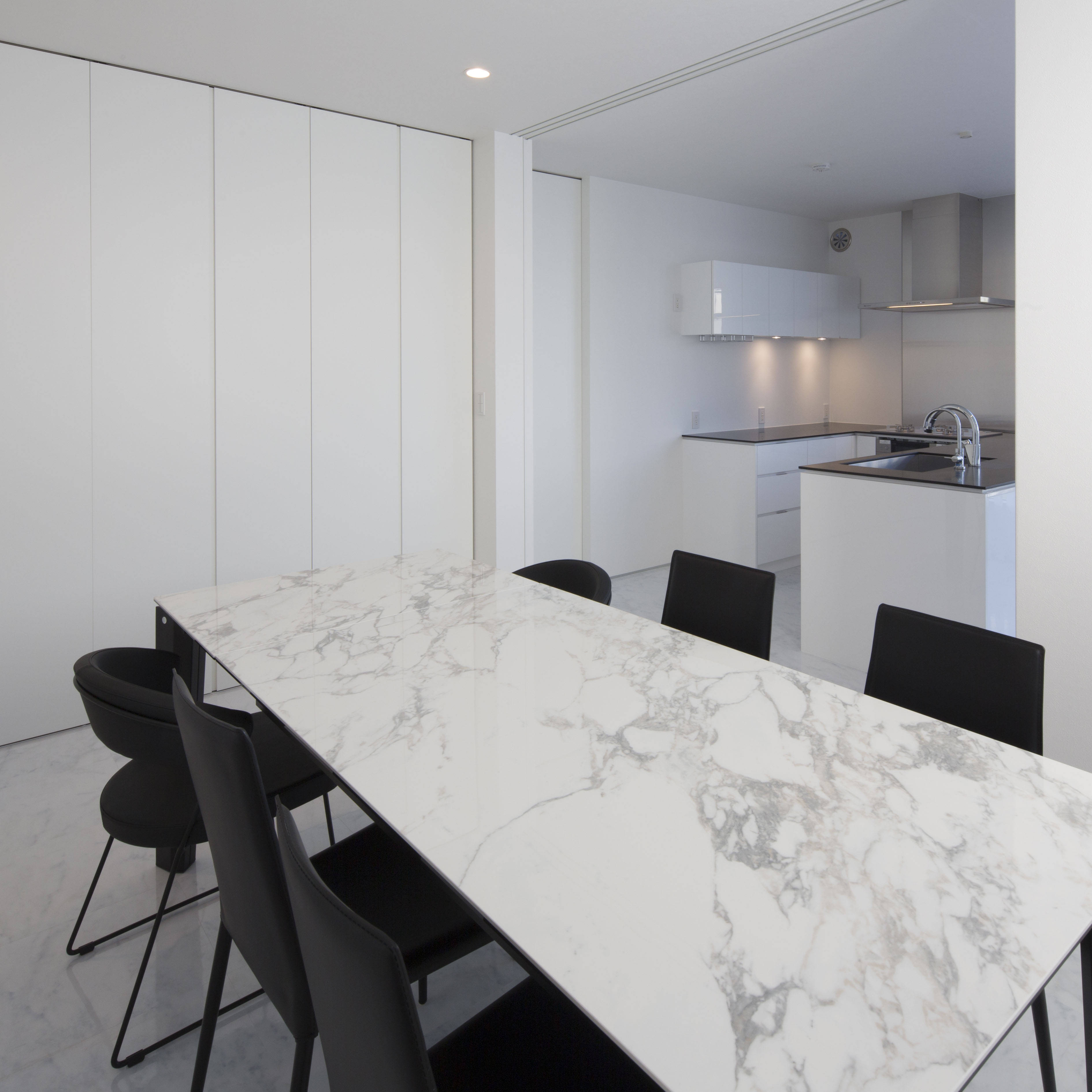 まさに清々しいの一言。 色調は「白」と「黒」の2色のみ。木質系のテクスチャーは一切ナシの徹底ぶり。
