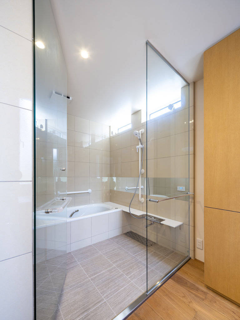 母の年齢を考慮し、車椅子でも生活できる設計としたが、現在の生活および意匠性も尊重し、完璧なバリアフリー住宅ではない。屋外の斜路も今はなく、植込みスペースを将来的に斜路として整備できるようにとどめた。