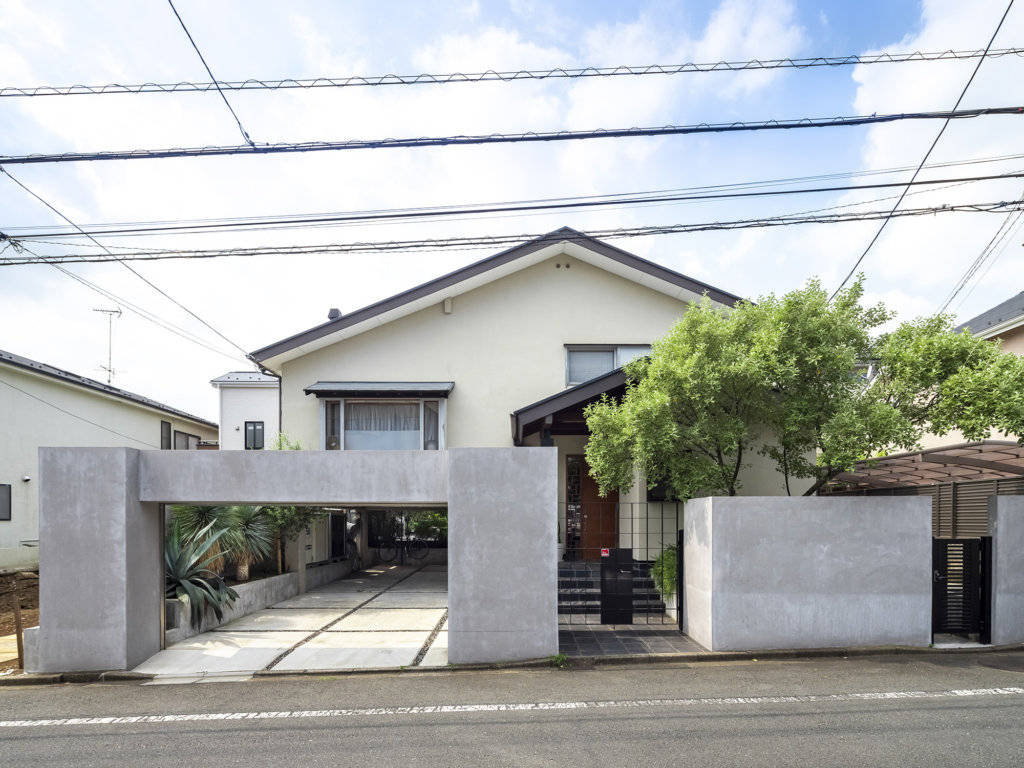 住宅そのものは既存のままで、外構としても門扉等、既存の要素が多く残る条件であった。新しい要素をできるだけ単純な状態とすることで、既存の要素とうまく馴染ませる計画とした。