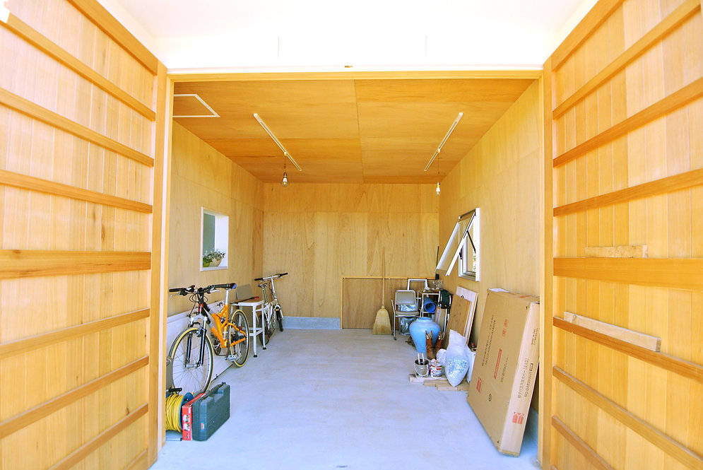 まず、大きなボリュームの中に複数の庭を散りばめた。部屋と庭は対の関係で配置され、それぞれの庭には「見る、使う、光を入れる」といった性格を与えた。建物のエントランスから玄関は薄暗い通路、「光を入れる庭」を横目に建物へと入る。その先に見えるのは、壁に囲まれながらも光が差し込む「見る庭」。いつの間にか建物の中に入っていることに気がつけば、その先にあるリビングからは芝敷きの庭が広がり、開放感のある「使う庭」が現れる。2つの庭に挟まれているダイニングは、それ自身も外部であるかのような場所である。そして、ダイニングを挟むように、リビングと対になっている寝室では、開口部の開放感を絞ることで、浴室や書斎の窓先同様に、他の性格をもった庭を「見る庭」へとシフトさせている。そして、アトリエは「光を入れる庭」を独占する、家から距離を置いた特別な場所である。