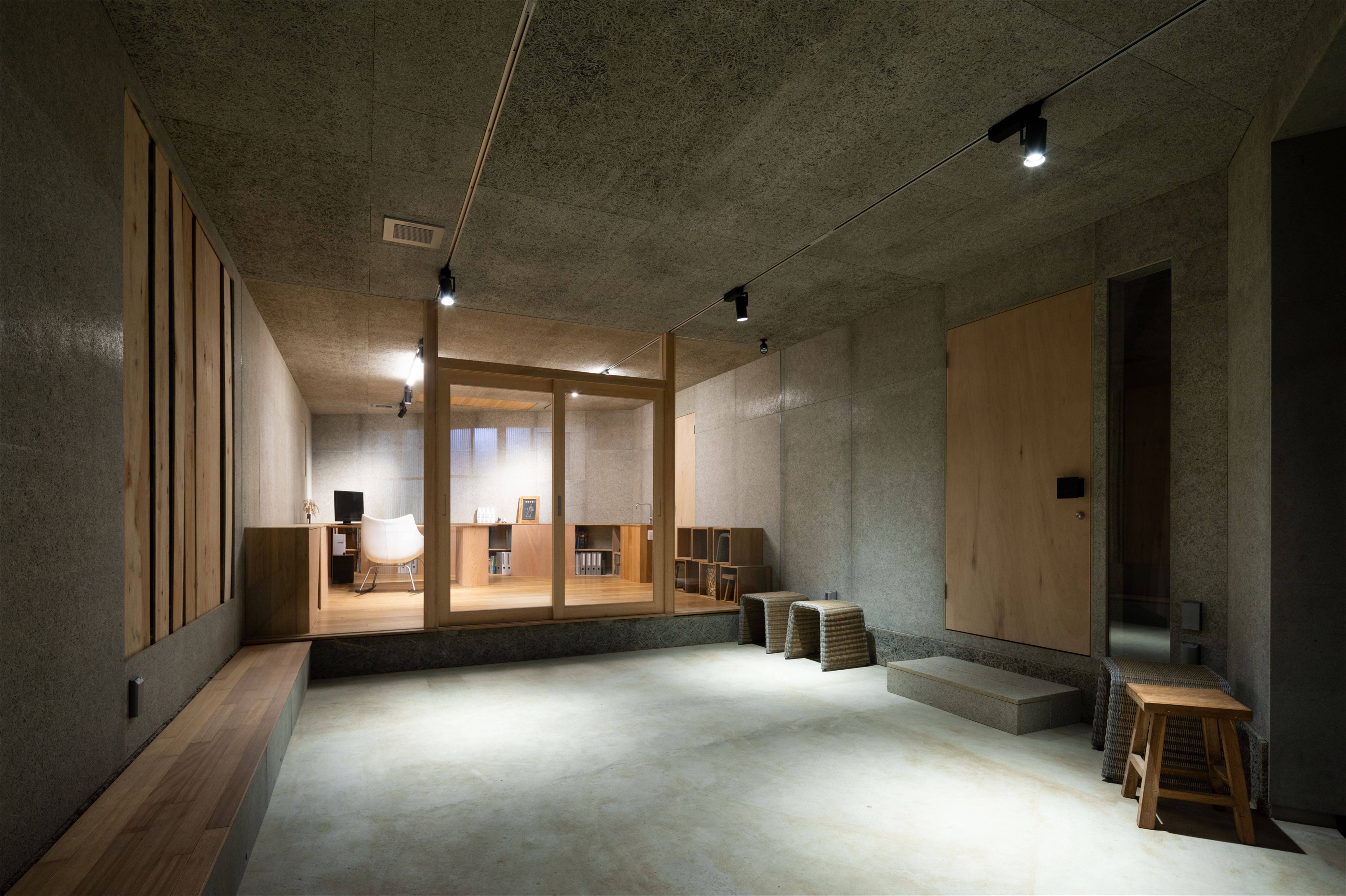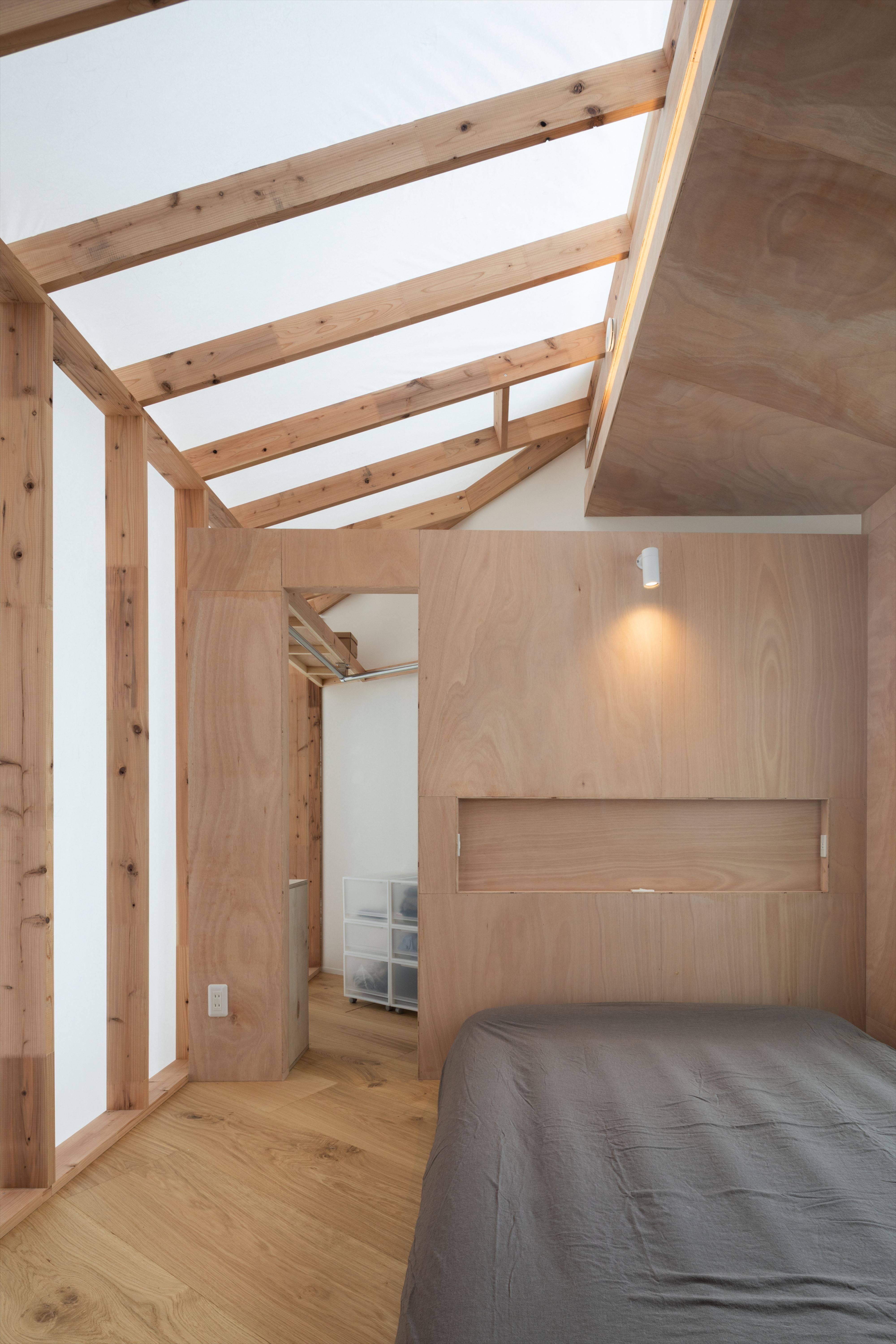 木の骨組に和紙を貼った2つの小屋 と 3つの小さな庭 を設けました