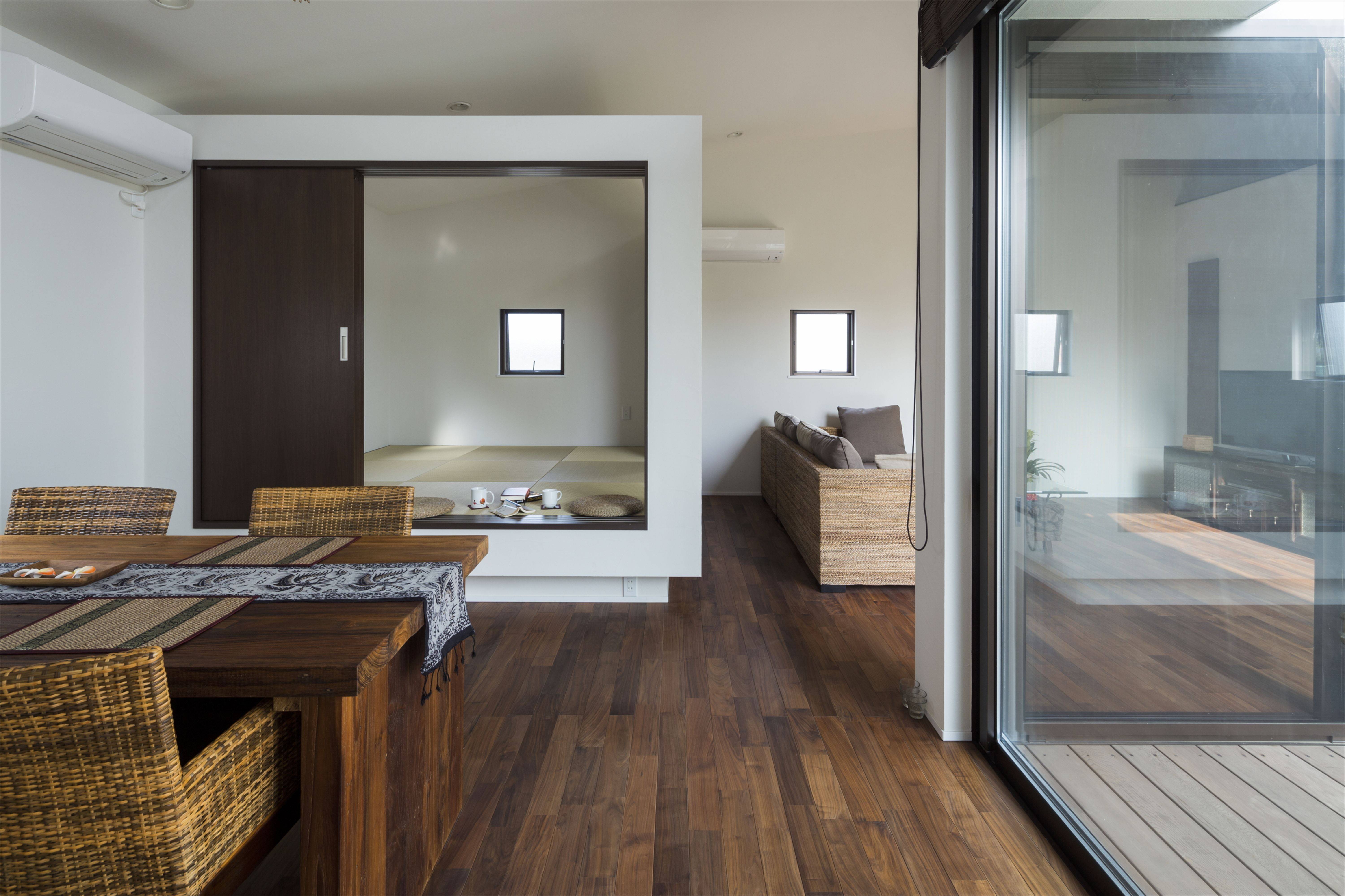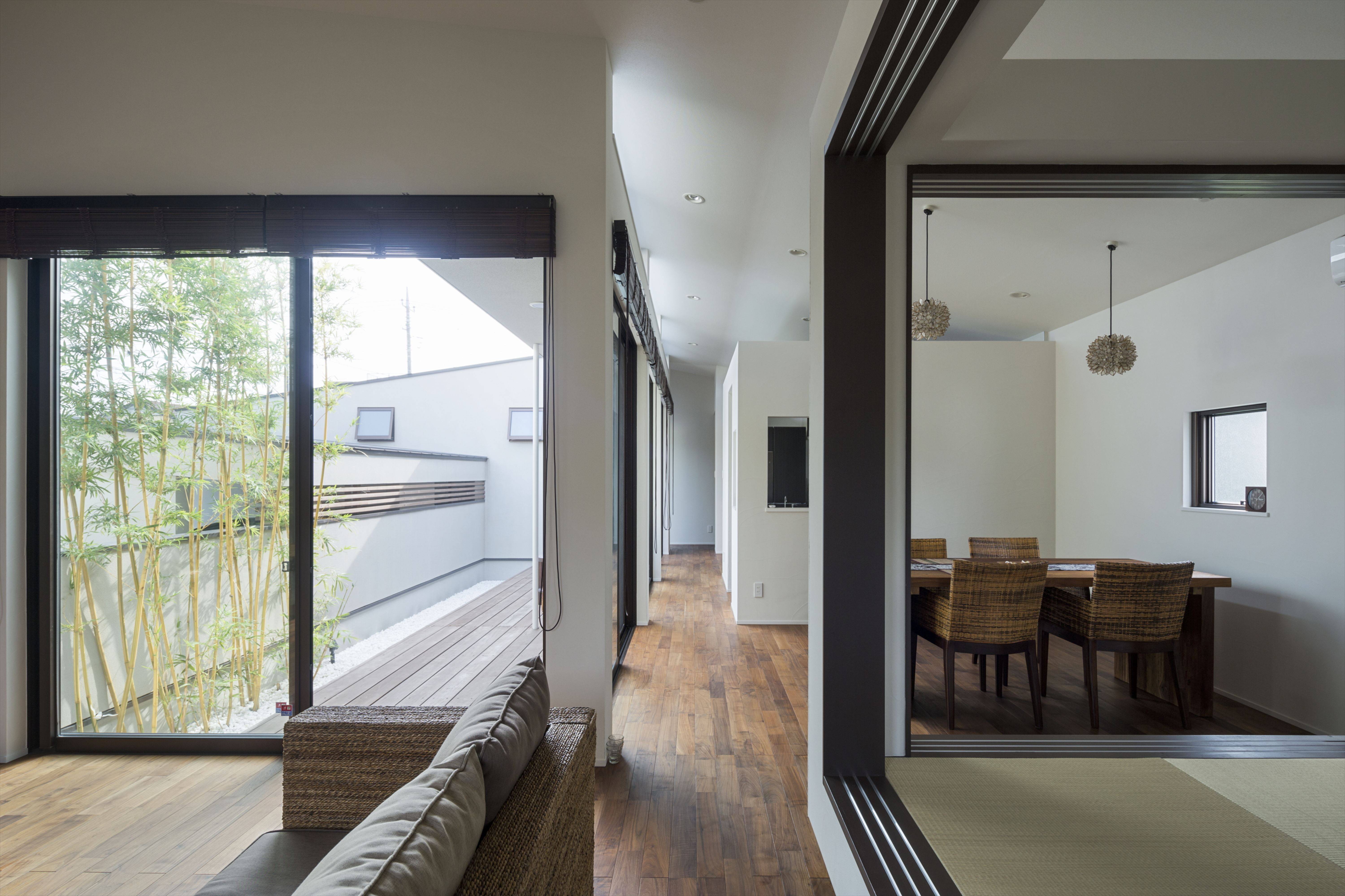 中庭のある、コの字型に構成された平屋です。
