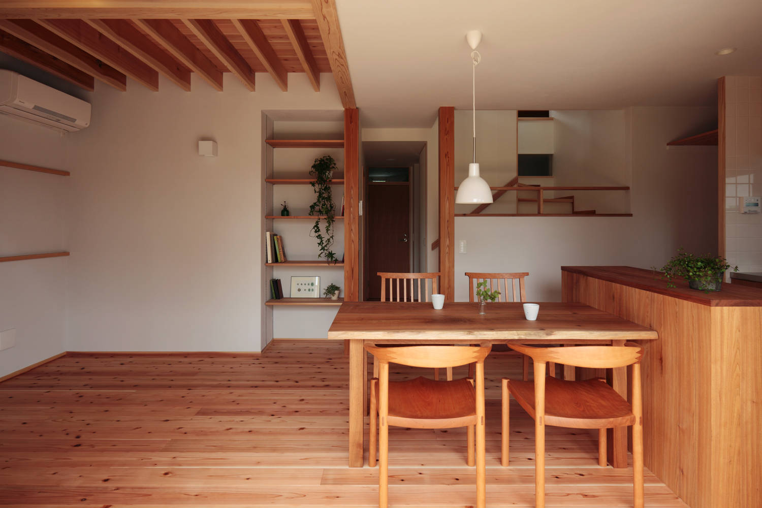 1階には玄関と浴室、トイレ、同居するお父さまのお部屋(和室)があり、LDKのスペースが限られてしまうので、キッチンを壁に向かった方向に配置し、できる限りリビングを広く使えるようにしました。