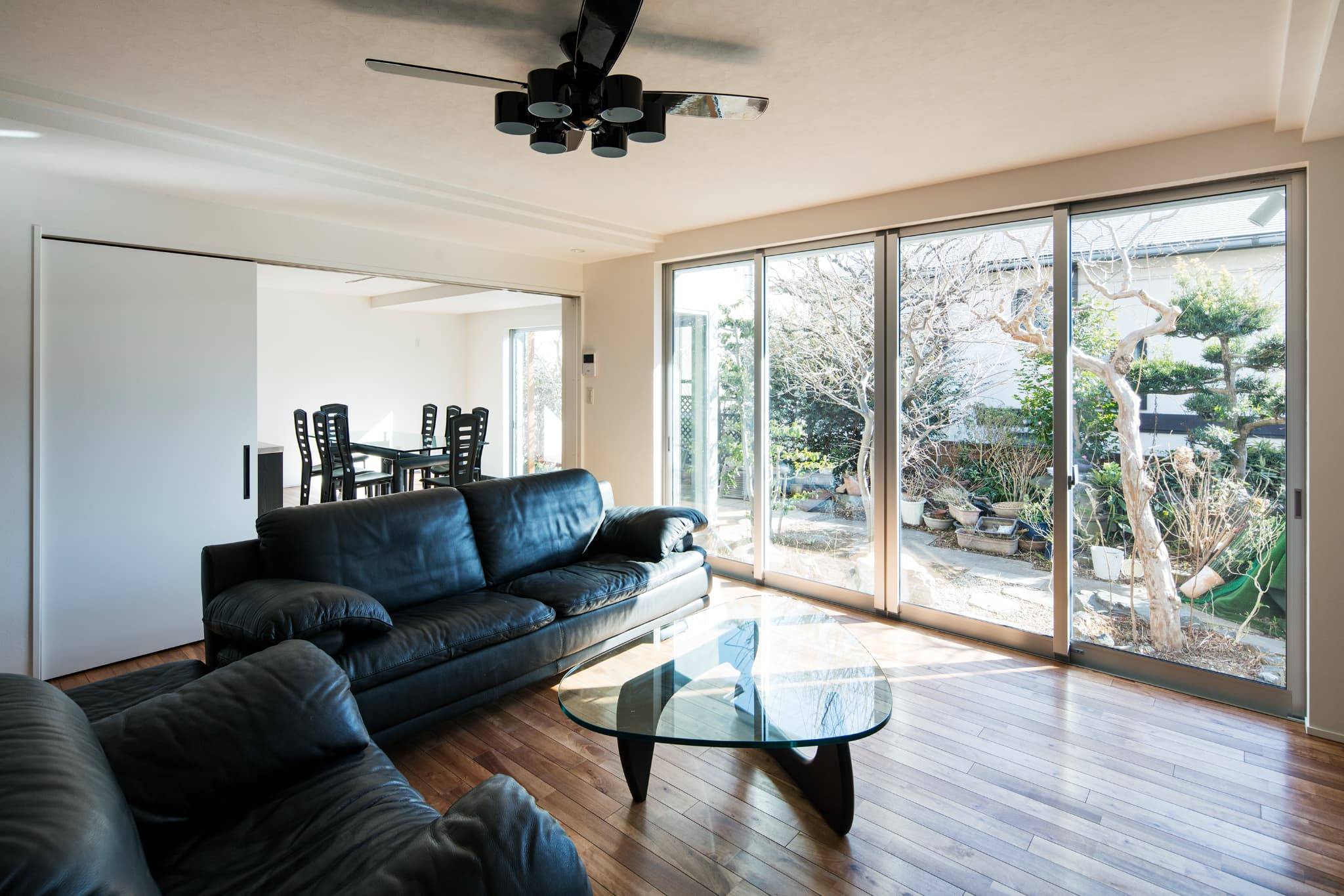 また元々単世帯を二世帯に変えているため、動線になる廊下など、空間の無駄を省き、リビングや個室などの居室部分を広く使えるようにしています。