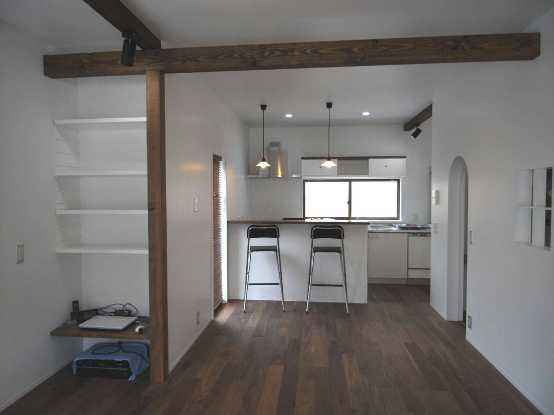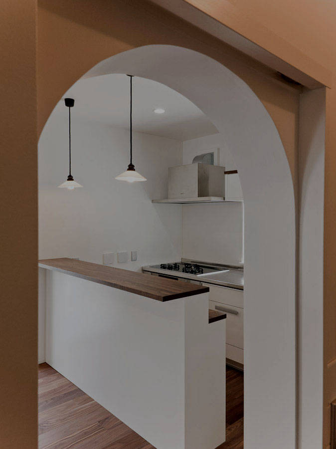 日当たりが悪く結露が多いというLDKを日当たりのいい和室と一室にしたL字の回廊のように展開するLDKにし、可能な限り既設の窓をLDKにとりいれることで、一日中どこかに光が差し込むようにした。