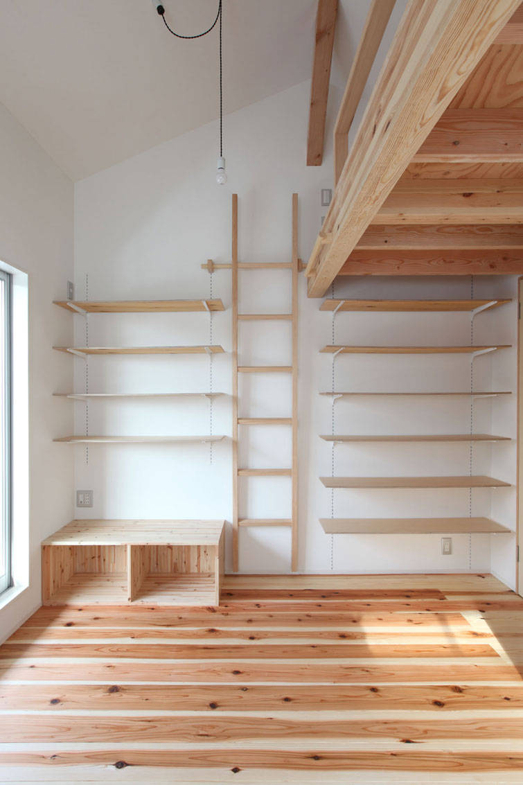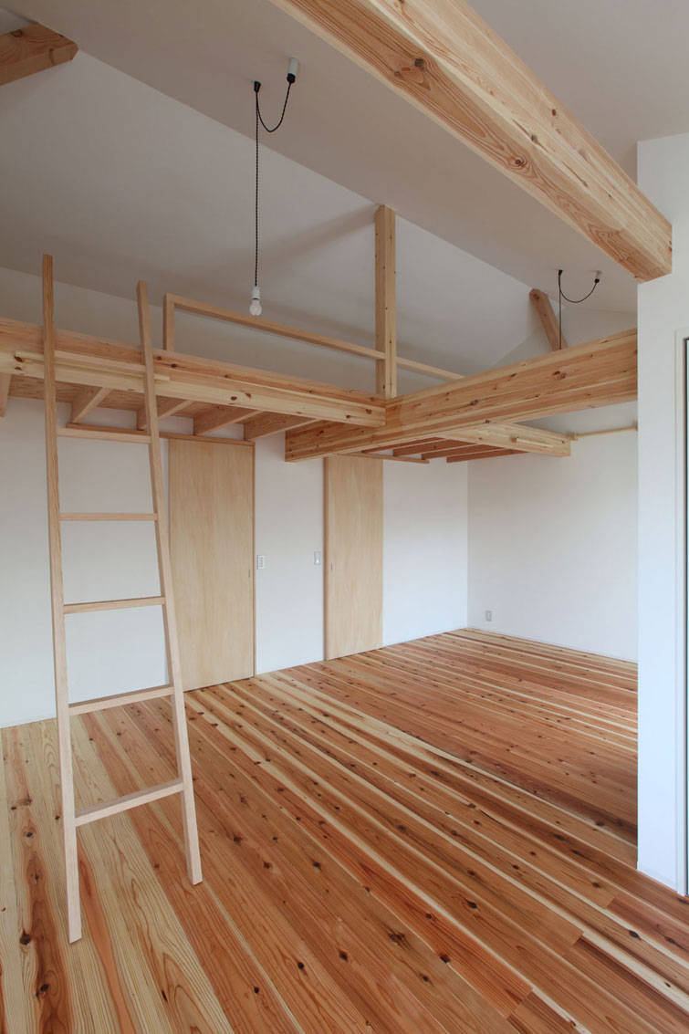 2階は子世帯が子供の成長に応じて臨機応変に生活できるようなスペ ースとした。2階の居室にはすべてロフトが設けられている。