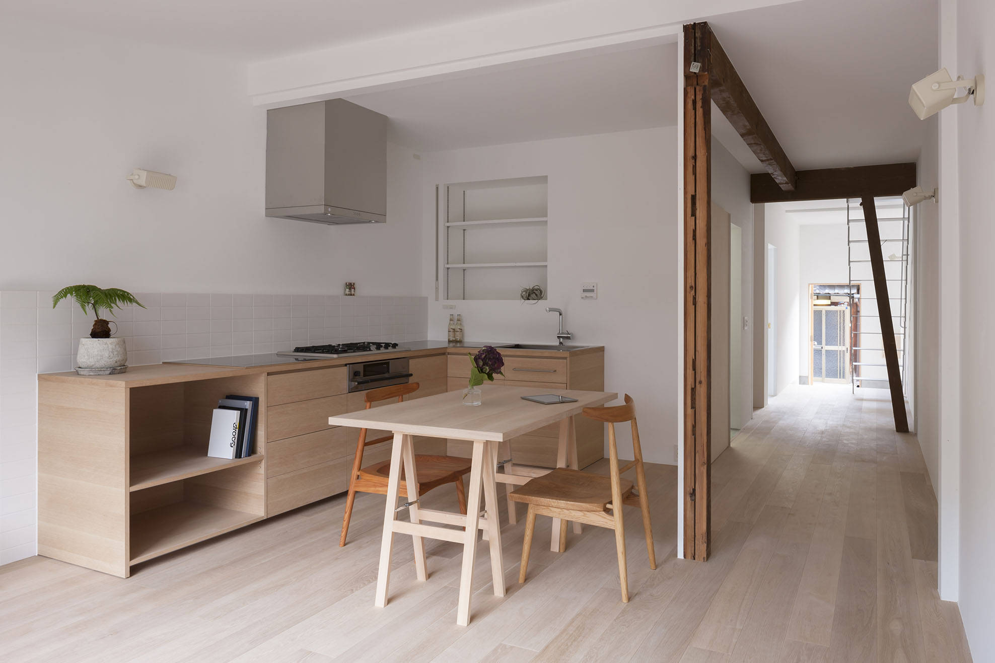 古い街並が残る高密度な地域にある昭和初期に建てられた戸建住宅のリノベーションである。