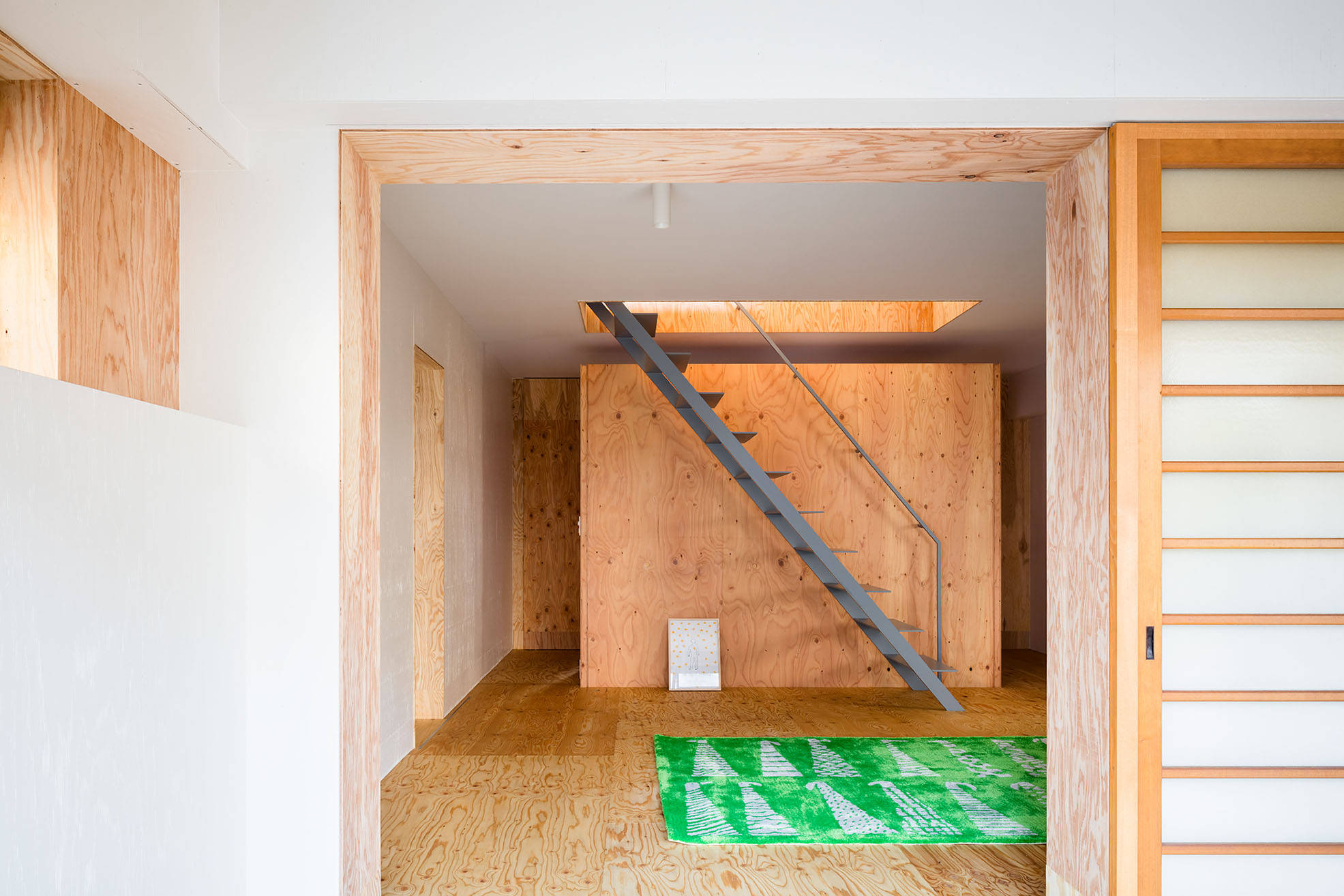 そこで耐力壁は撤去せず、もともとある回遊性を生かす方向、いくつかの目的地をつなぐための動線ではなく、動線そのものが切り分けられない生活の場としてプランを矯正することを試みた。