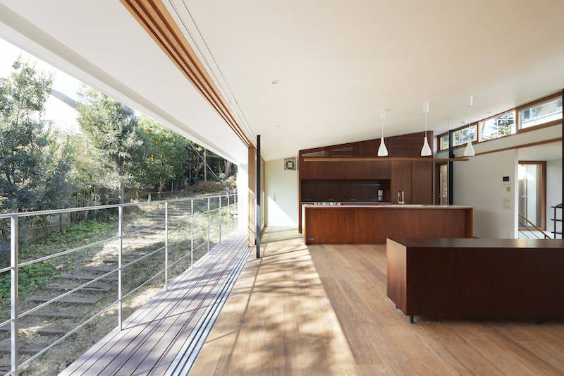 シラカシやサワラの木立に囲まれた横浜郊外の住宅。