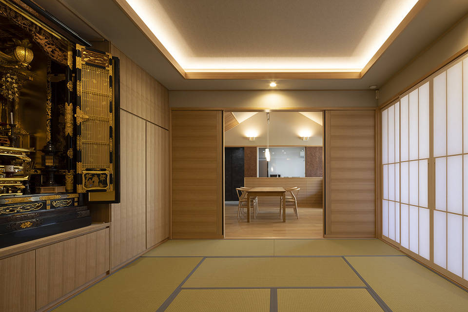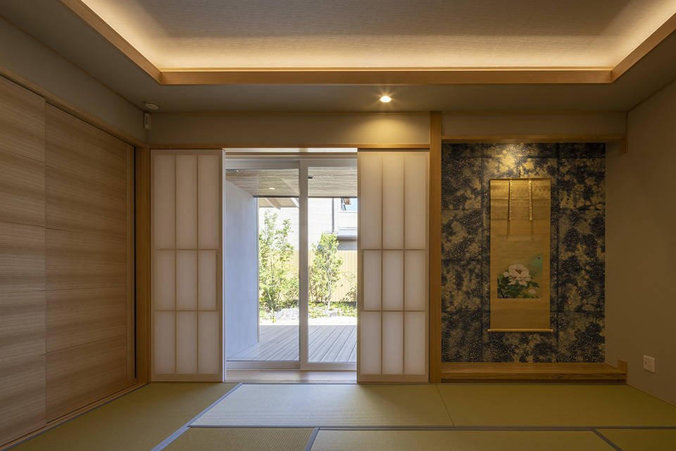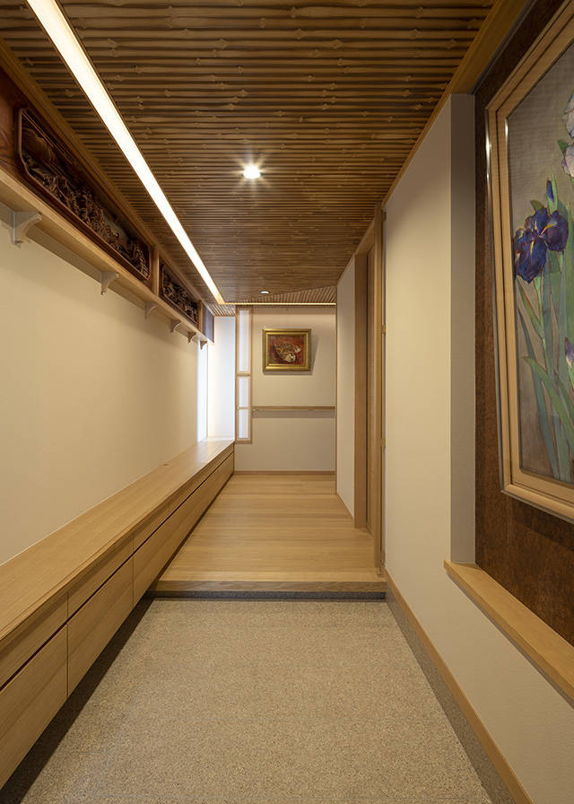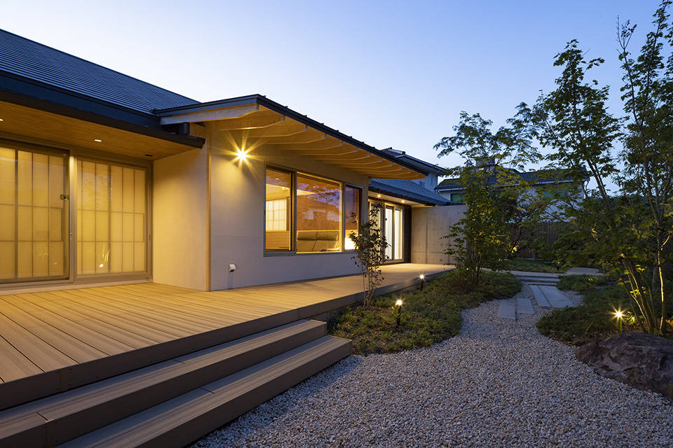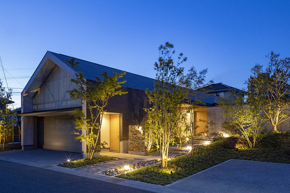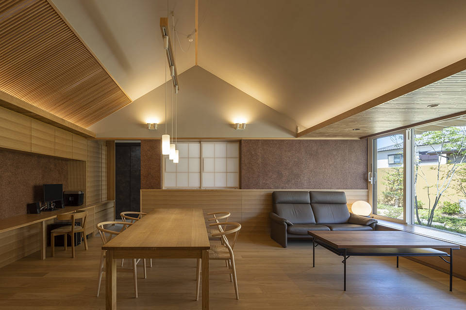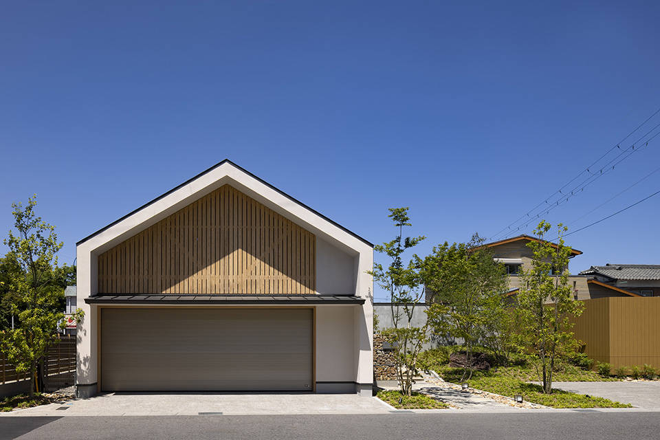 屋外から内部の気配を感じさせない外観と伸びやかな内部空間。
