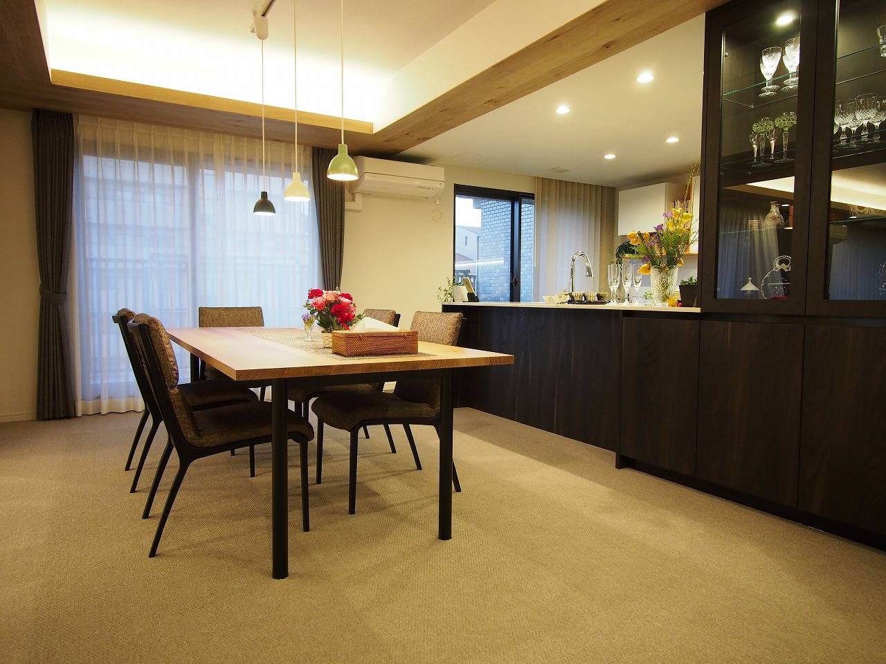 シックな雰囲気がお好きだとのこと、また床はマンション規定のためカーペットでないといけないことがわかり、