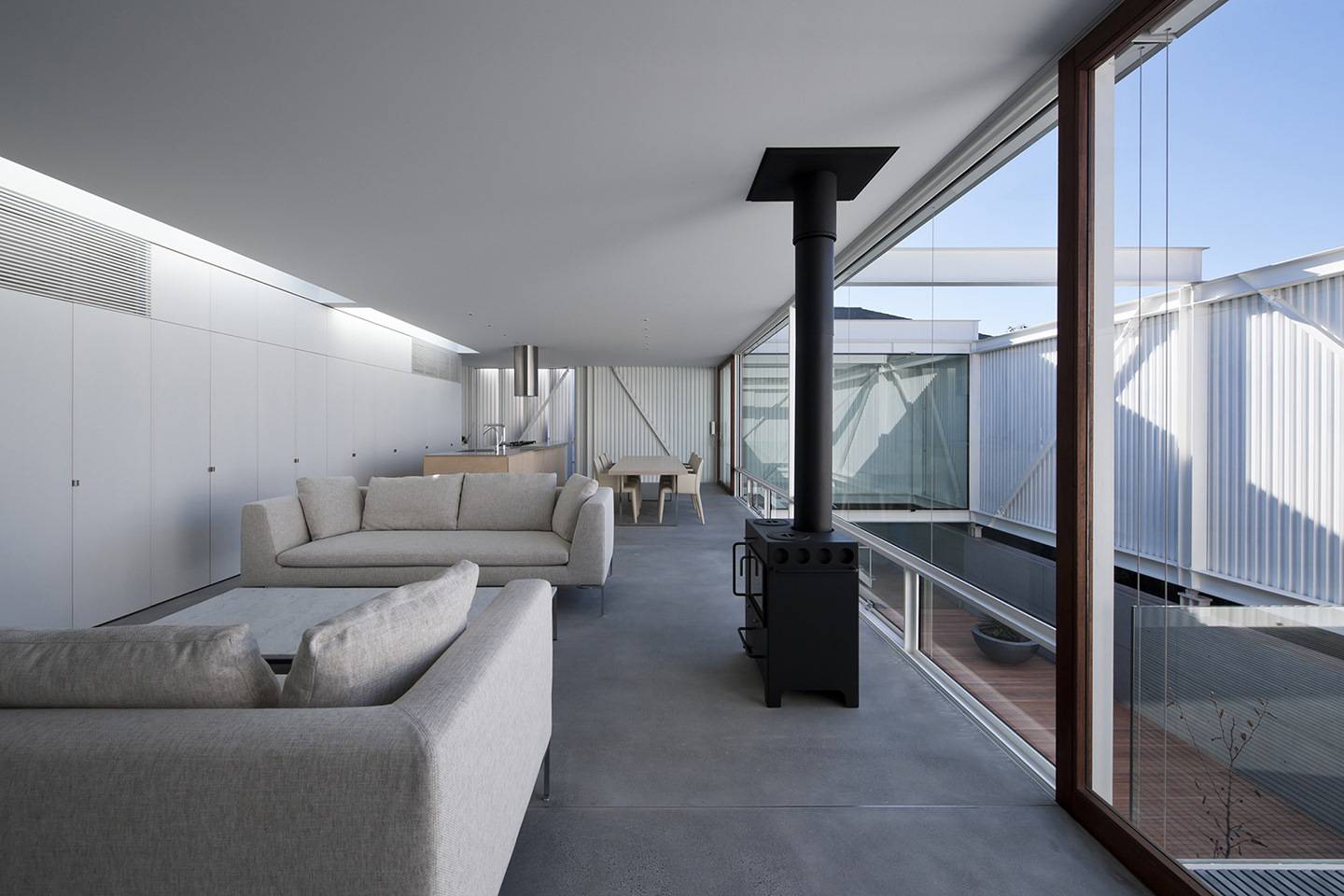 建主は外からは覗けないが内部では開放的な空間が展開する、シンプルなかたちの住宅を望んでいた。この要望が、この家のすべてのデザインをつくり出したといっても良い。