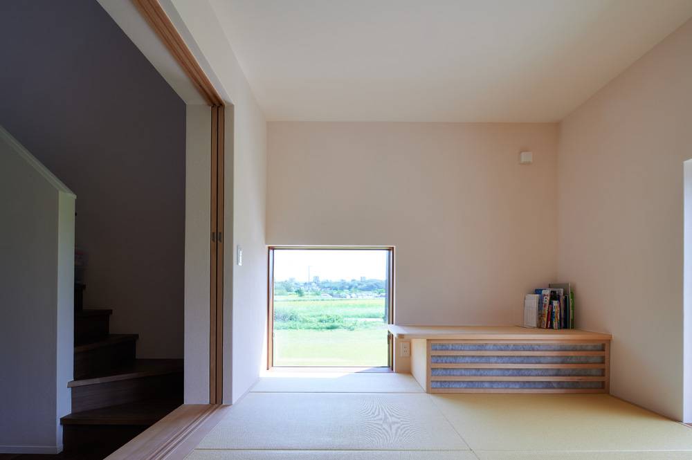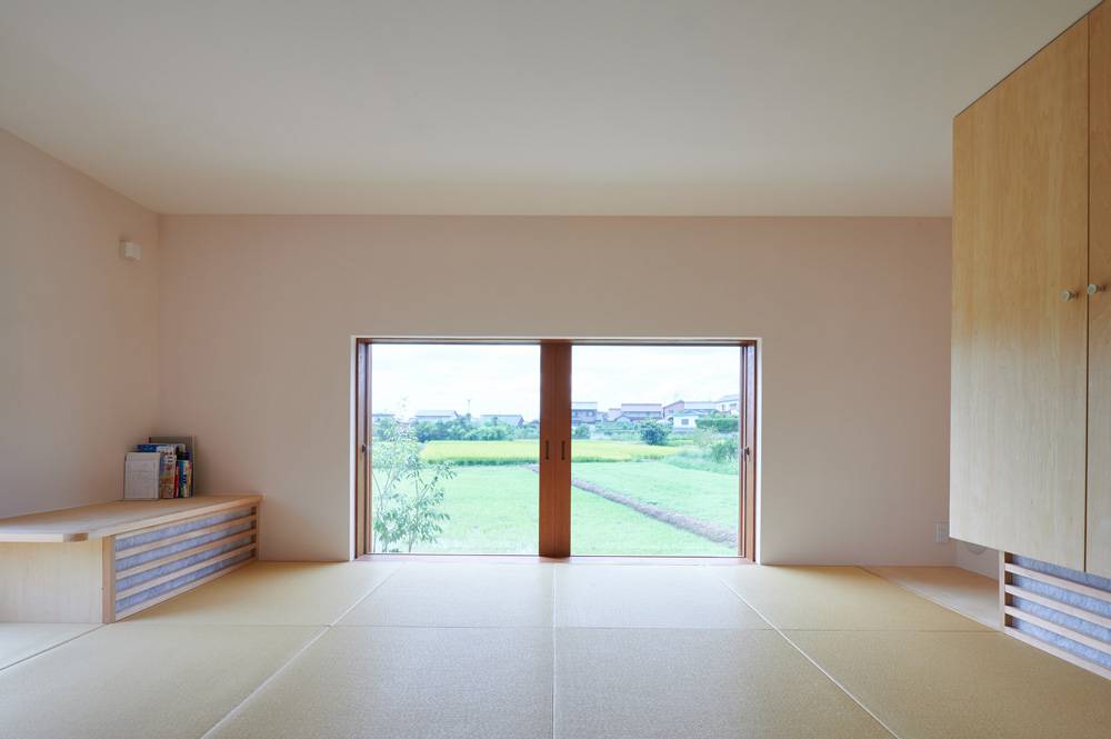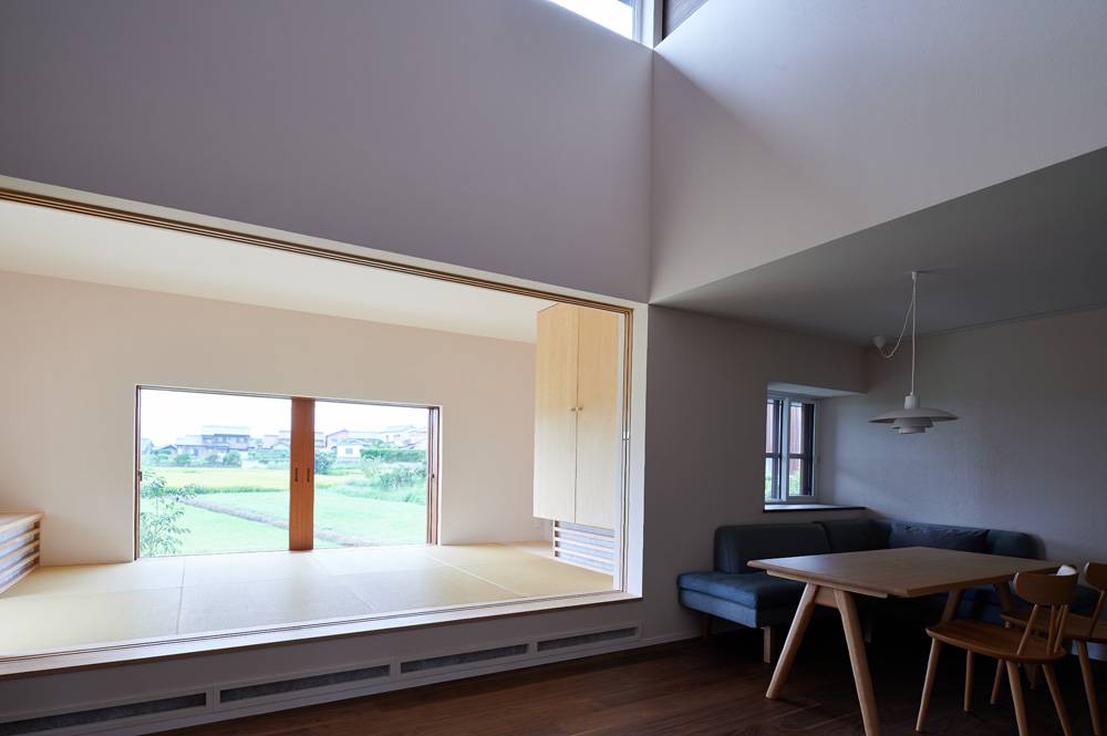 周囲の親族がもつ農地をこの家の庭に見立てて設計しています。