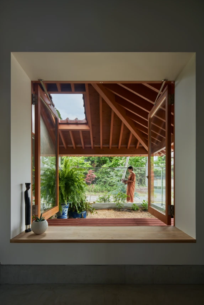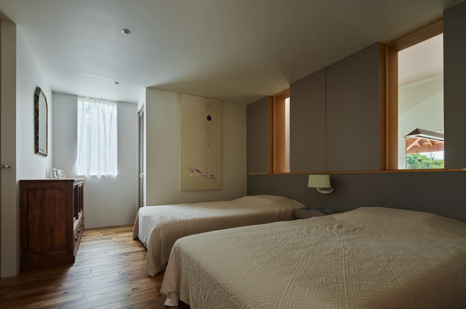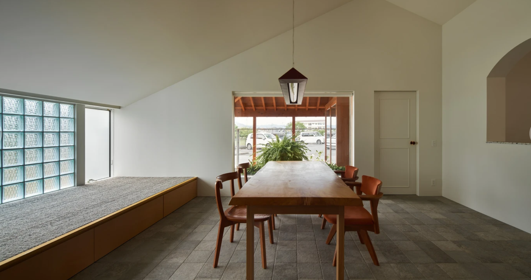 砂丘をイメージした和室は中空ポリカーボネートの半透明の壁から柔らかく光が漏れます。