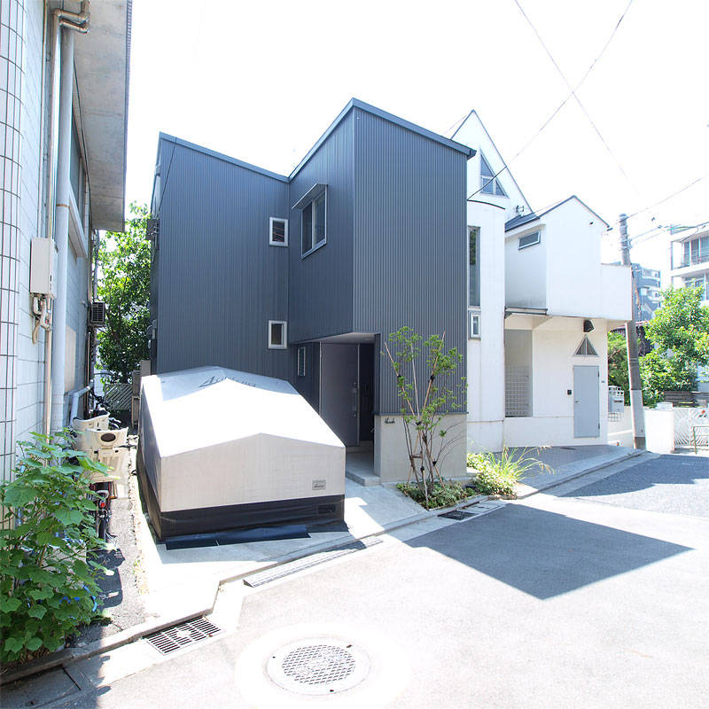 という事が、Mさんの家の条件でした。そんなMさんが捜された土地に、都内の崖地がありました。崖地では、擁壁の問題があるので、そこにかなりの金額が掛ってしまう事をご説明して、一度は断念され、さらに土地探しをされていたのですが、「やっぱりあの土地が忘れられない」と購入に至り、設計が始まりました。当初 LWHのプラン で検討していました。その時点でガレージハウスという条件は満たされないのですが、外置きで市販のシェルターを使う事に。しかし、Mさんの車が予想以上に大きく、家の形状を変えざるを得ませんでした。