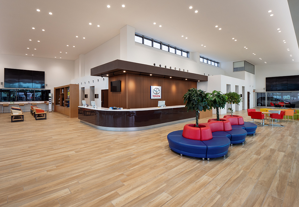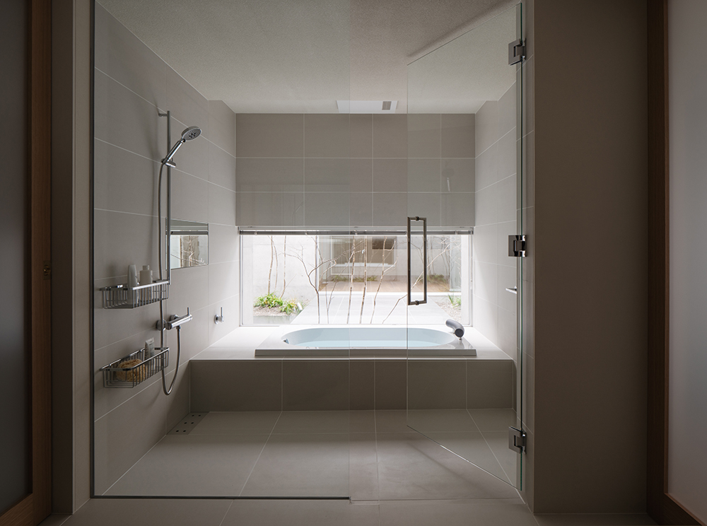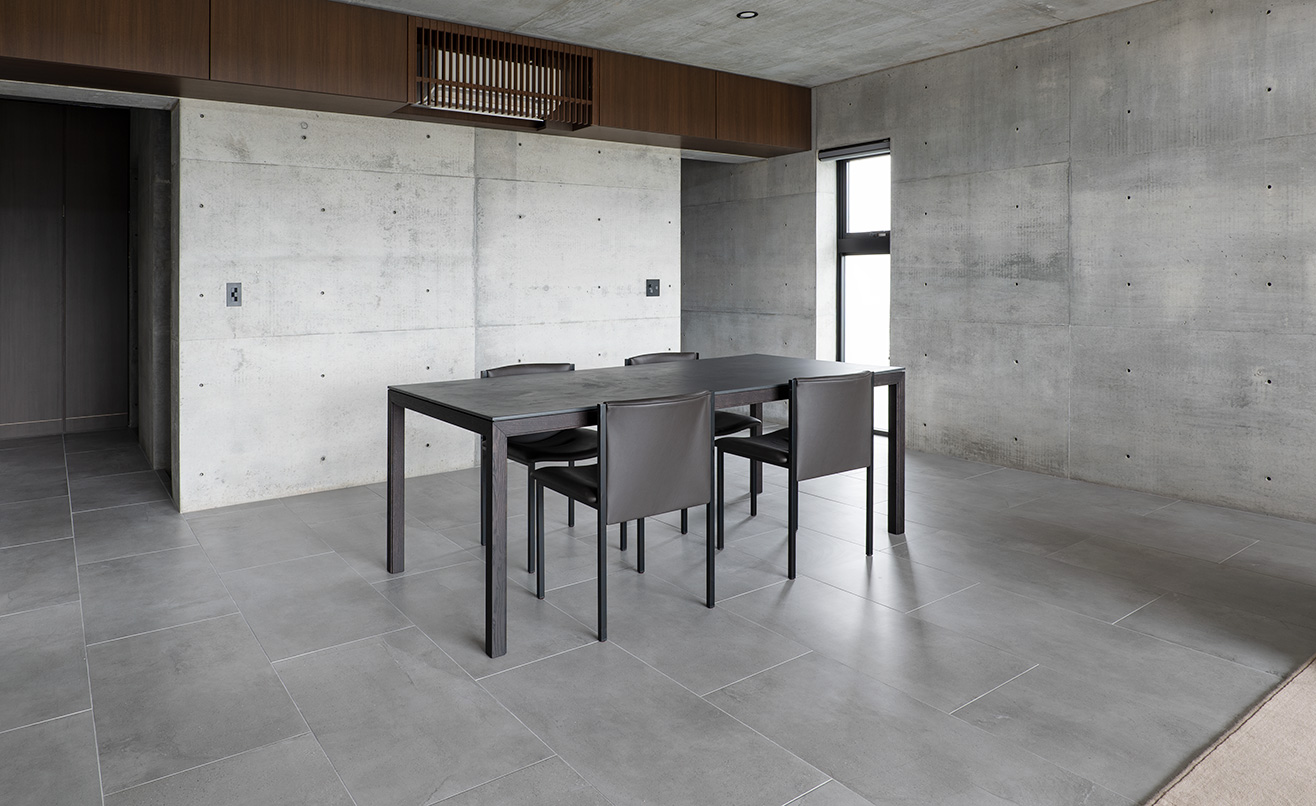 フォンテトレーディングのタイルは、タイル仕上げ=安っぽいというイメージを払拭する、天然石と遜色ないグレード感のあるタイルです。エクステリアインテリアを問わず使用でき、大きめのサイズ(□600450×900)は、重厚な雰囲気を空間にもたらします。すべり抵抗値の高いラフ仕上げも取り揃えており、適材適所に採用しています。