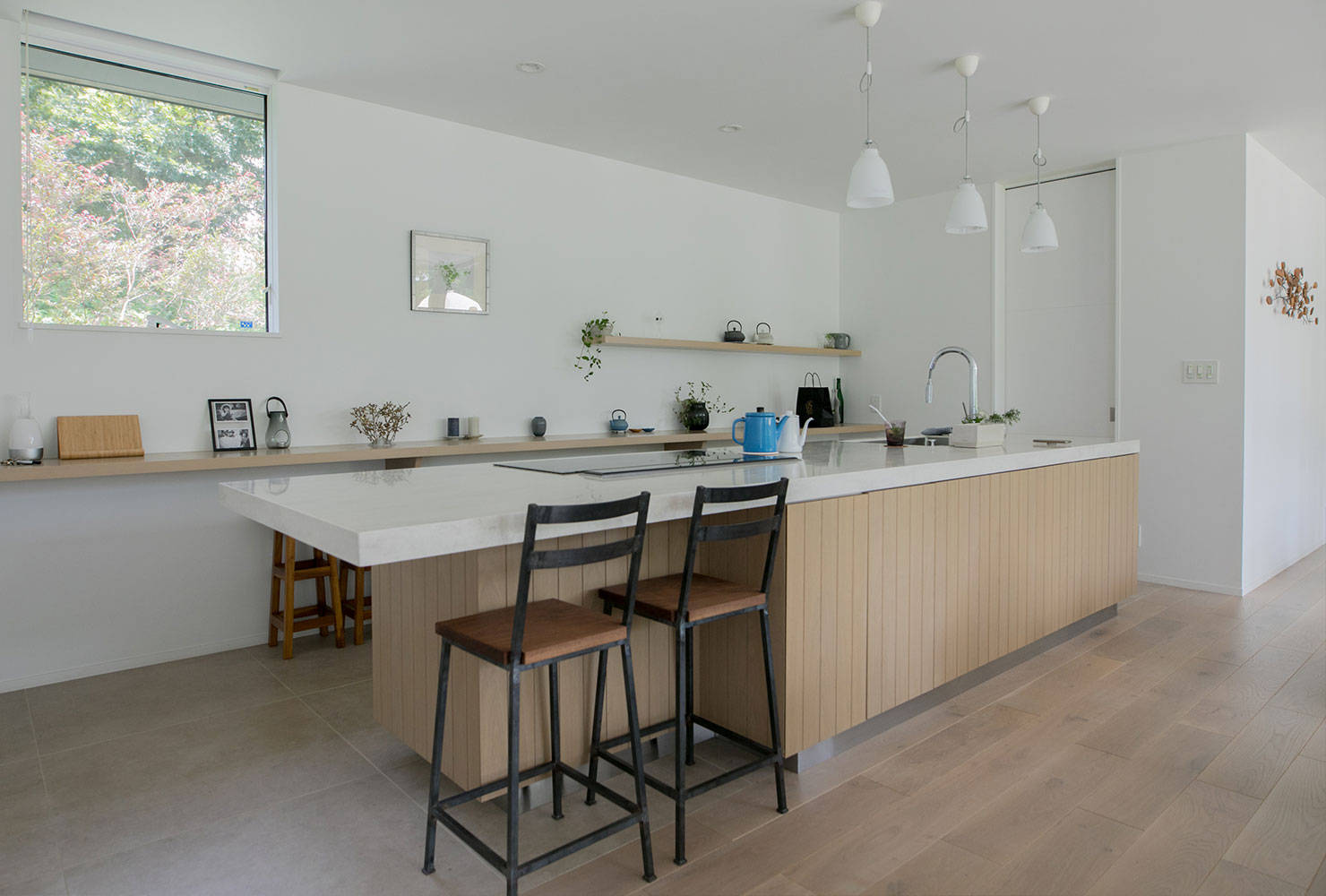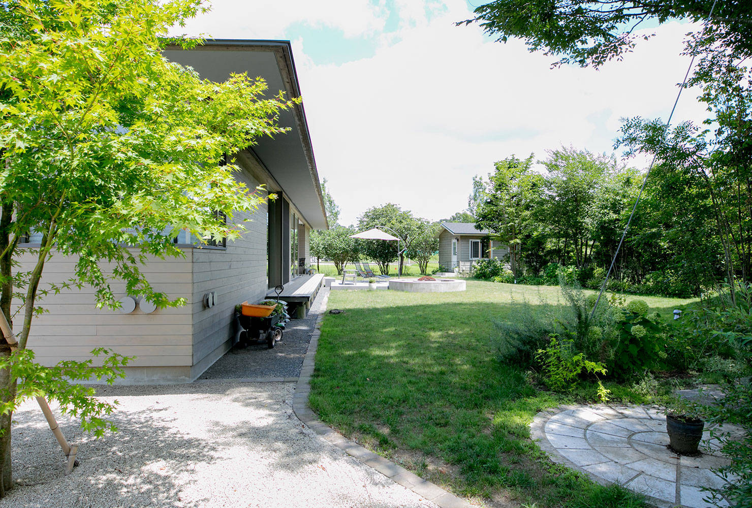 そんな二人が建てたのは、やわらかな緑に囲まれた凛とした佇まいの平屋建てのウィークエンドハウスでした。