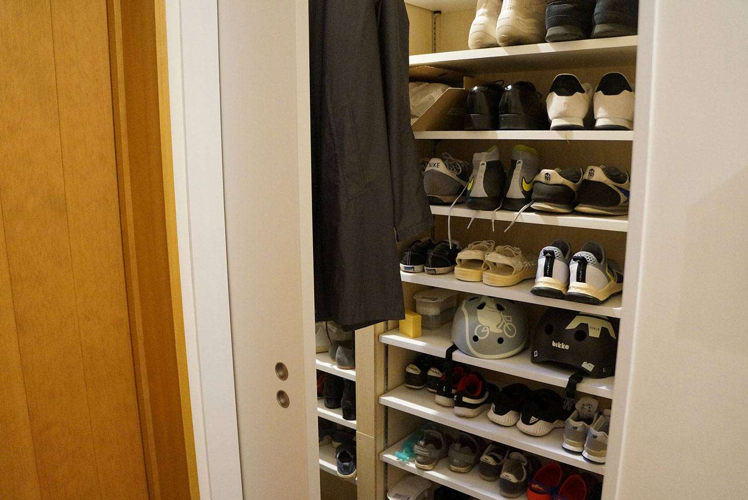 ファッションが大好きという寺坂ご夫妻。玄関横にはシューズクローゼット。
