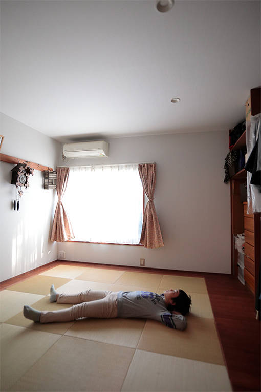 北向きの灯りがちょうどよい寝室で、ゴロン。