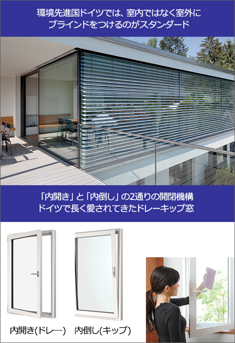 同社が提案する製品がもう一つ。冷暖房にあまり頼らない快適な暮らしを叶える、高性能断熱樹脂サッシ「エーデルフェンスター」という窓。断熱性に優れたPVC樹脂サッシとトリプルガラスのコンビで季節や天候に左右されない快適エコライフが叶います。