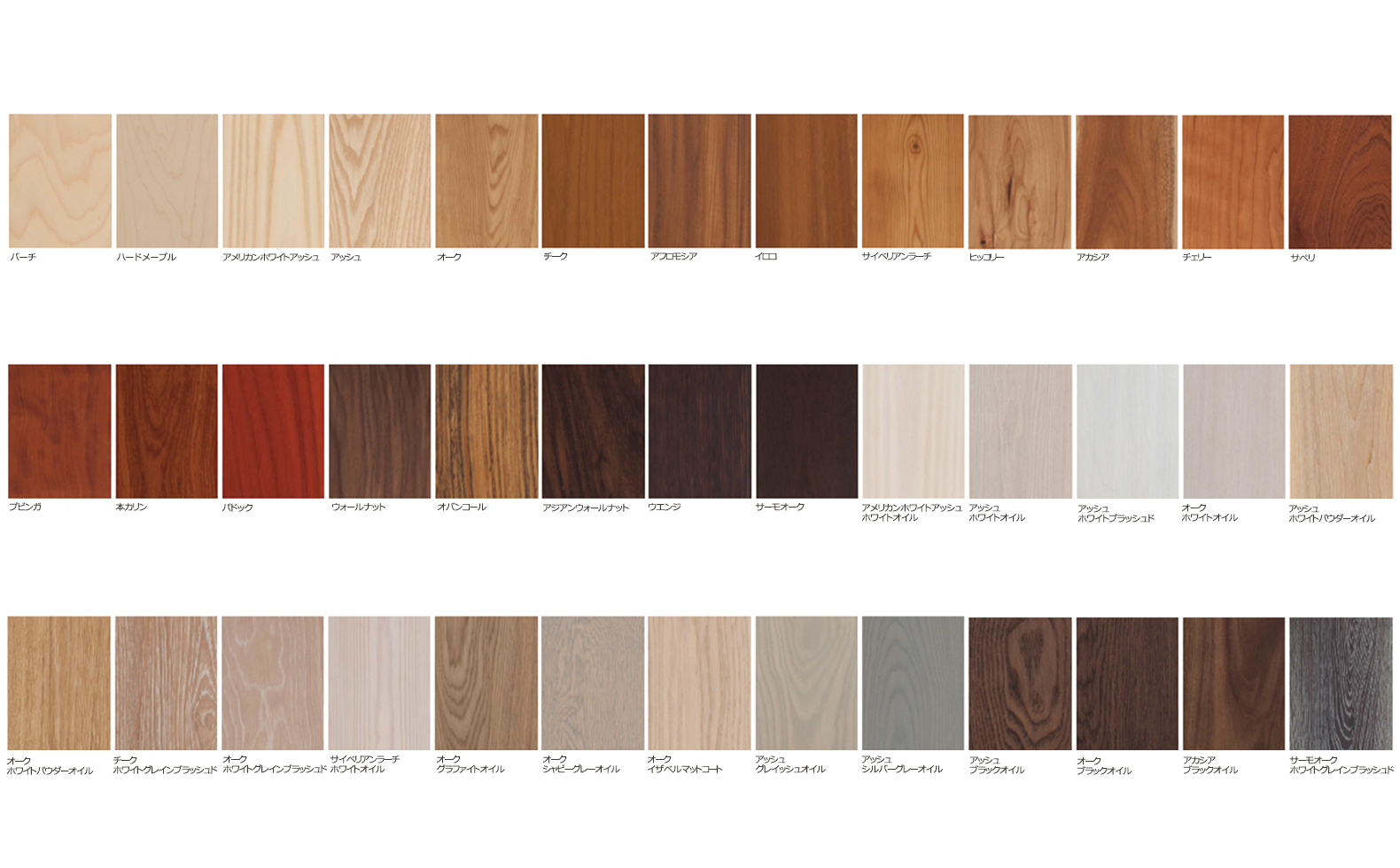 現場の声を形にするうちに、取り扱う樹種も、バーチやオークなどの馴染みのものから、本カリンやアカシアなどの希少なものまで、今では22種類から選べるようになったといいます。