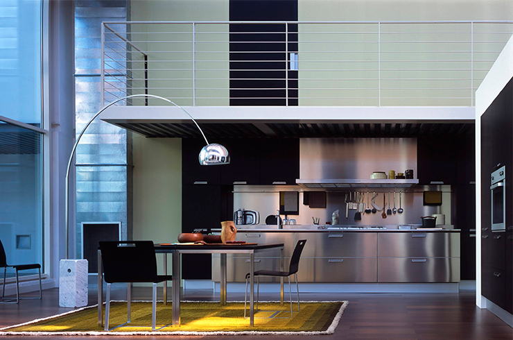 そんなカスティリオーニ兄弟の最高傑作の一つが1962年に発表された照明=ARCO(アルコ)です。「天井に穴を開けなくてもダイニングテーブルを美しく照らす照明を作れないか」と考えていた2人が、街燈を見て思いついたのがARCO独特のアーチを描いたようなスタイル。