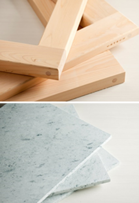 森林浴気分を味わえる「檜」と国産天然石の「十和田石」