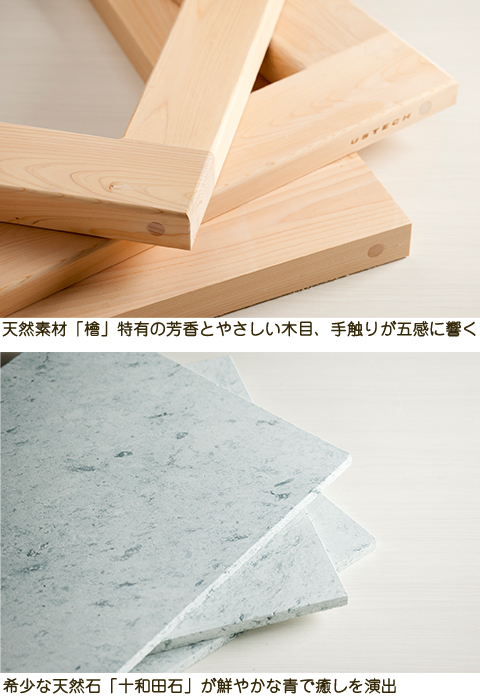 和のユニットバス「紺碧AZUR」の浴槽には十和田石が採用されています。
